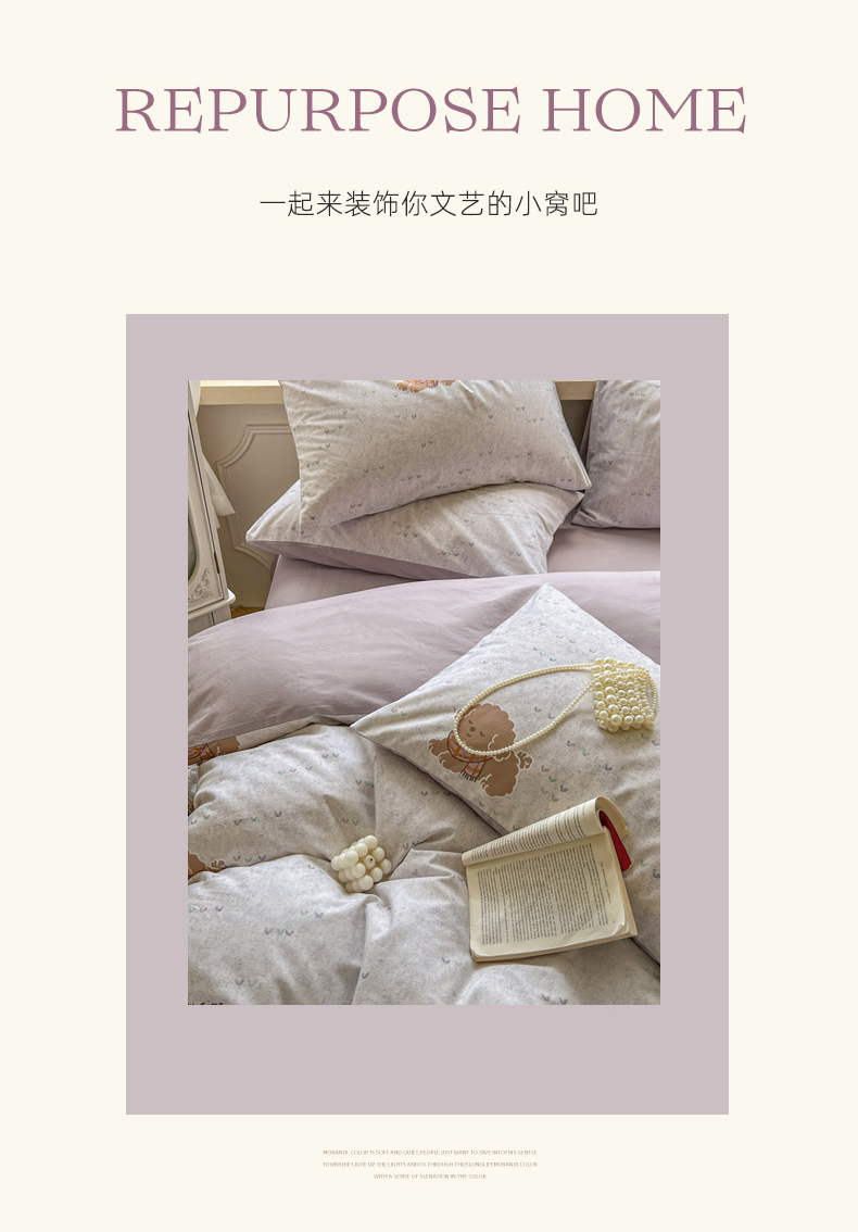 (总)田野 2025新款全棉水洗棉提花四件套,花田,花颜,帽子狗,蘑菇,飘带,泰迪狗,小树林-咖,小象,小雨点,樱桃-绿