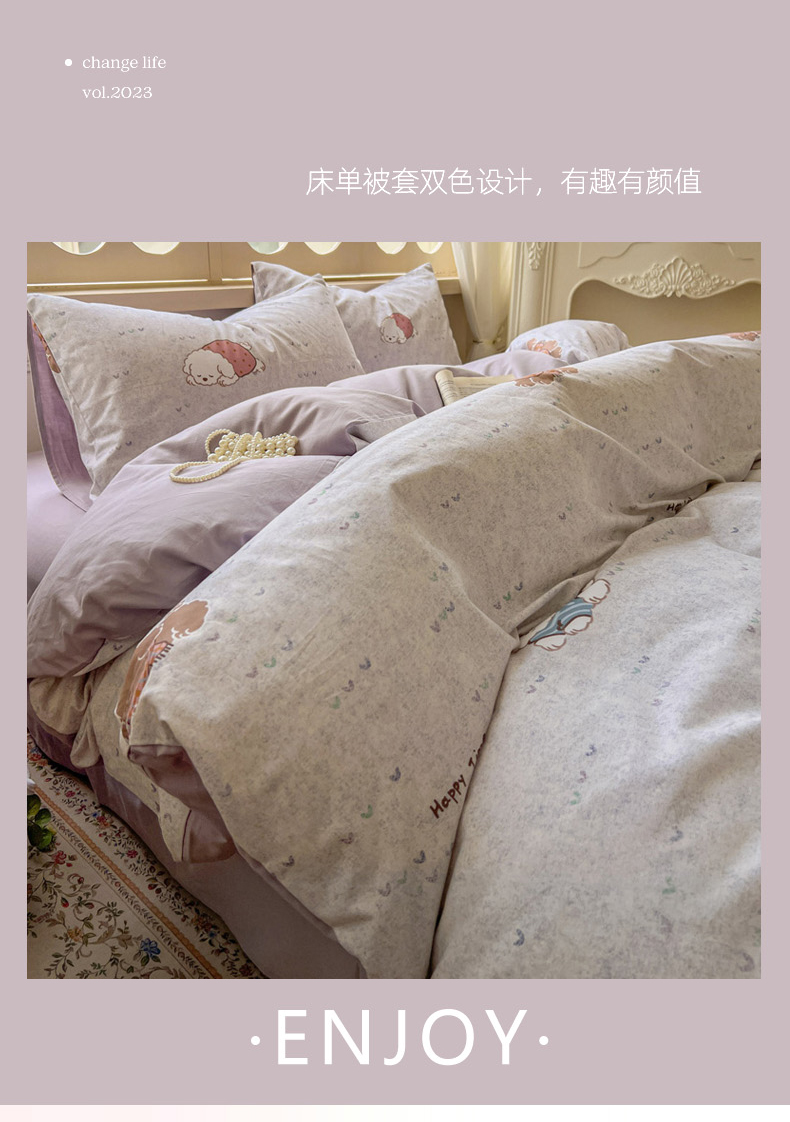 田野 2025新款全棉13360加厚磨毛印花四件套 幸运狗