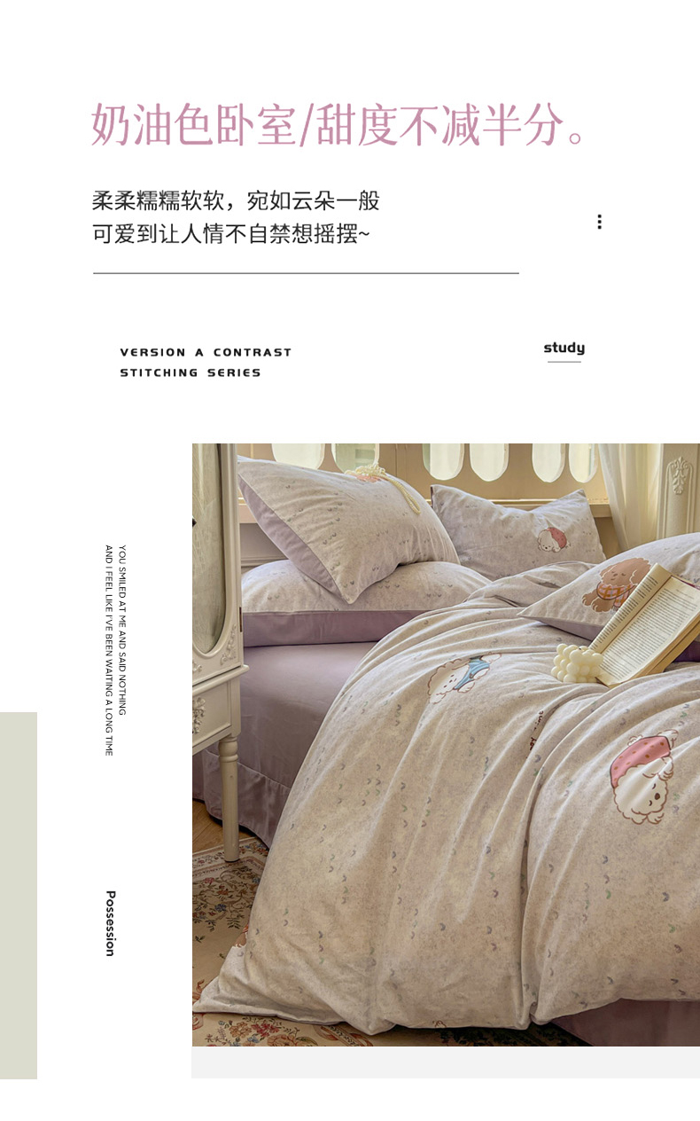 (总)田野 2023新款全棉A类贝壳边双层纱四件套,饼干熊,波波兔,呆萌熊,萌宠乐园,萌兔森林,甜心小兔,薇拉,小蘑菇,伊甜