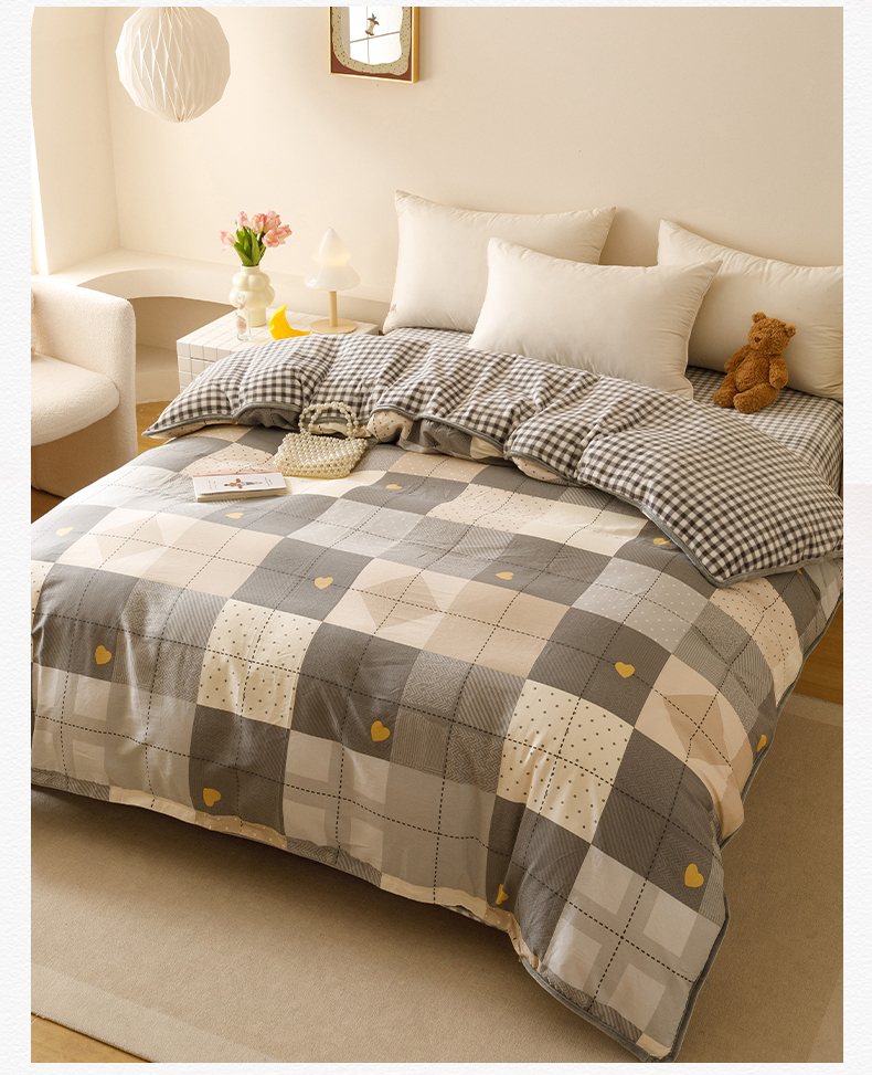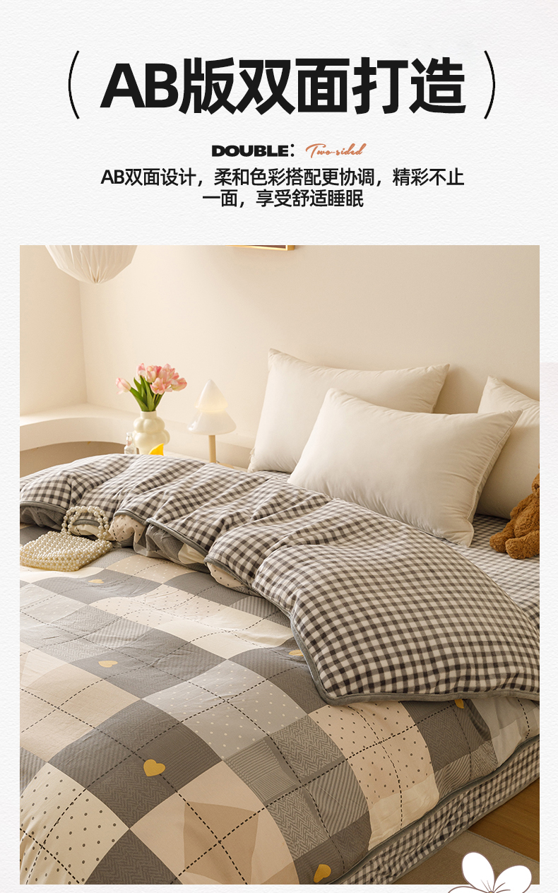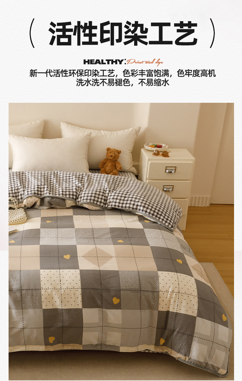 商品名称:红粉佳人家纺 2025新款A类棉加绒印花单被套被套单件 积木格子