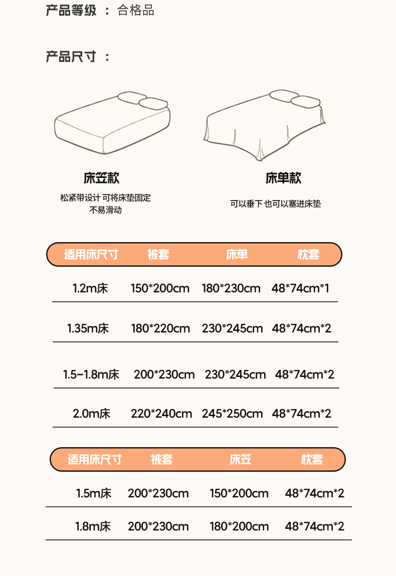 【床笠款】1.8四件套-被套200x230 | ¥120.00 |
