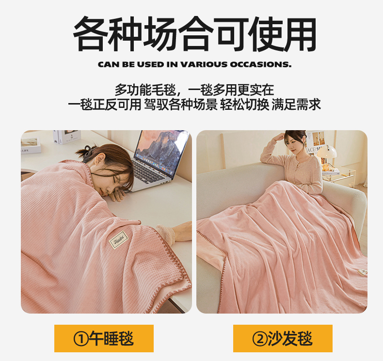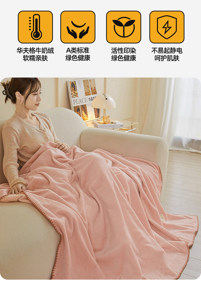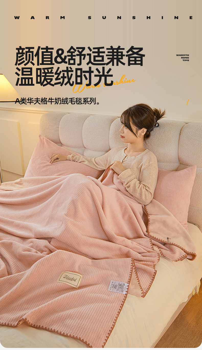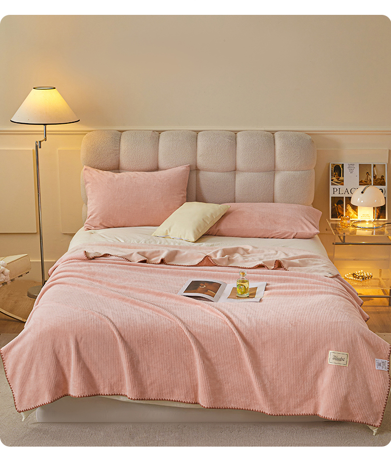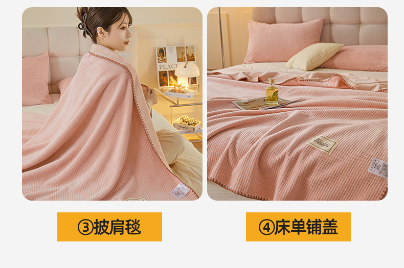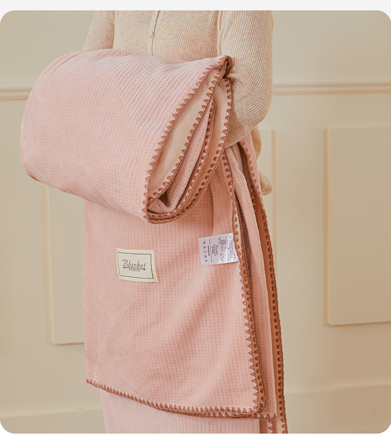 雯豆家纺 2025新品华夫格毛毯盖毯双层加厚办公室披肩毯子 自由风-密合粉