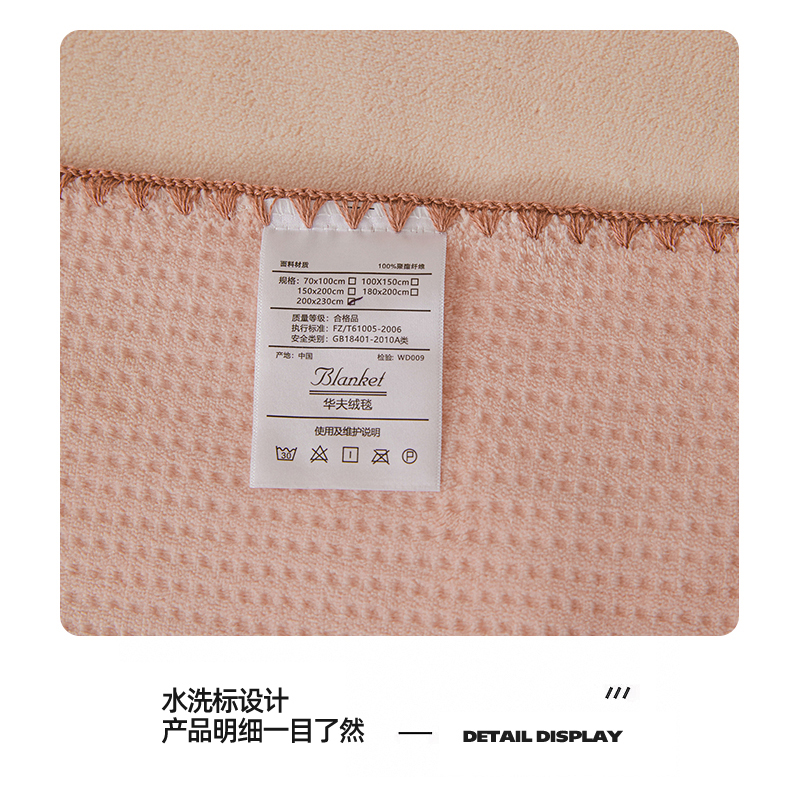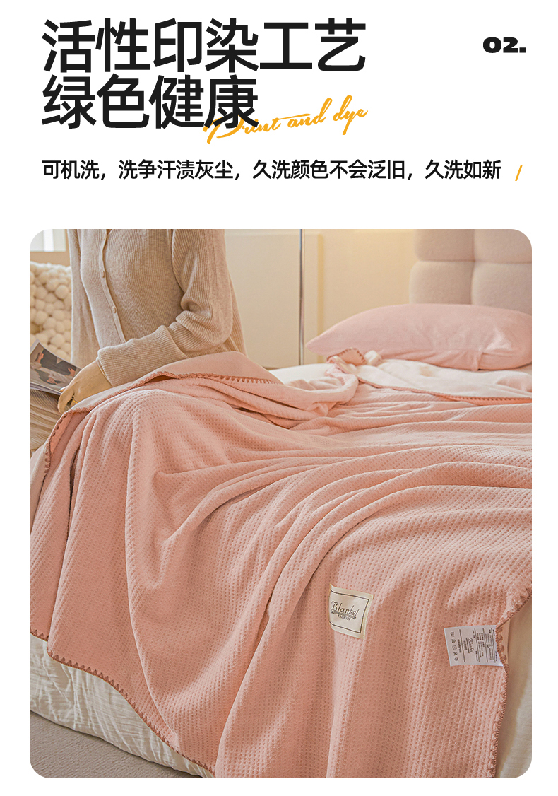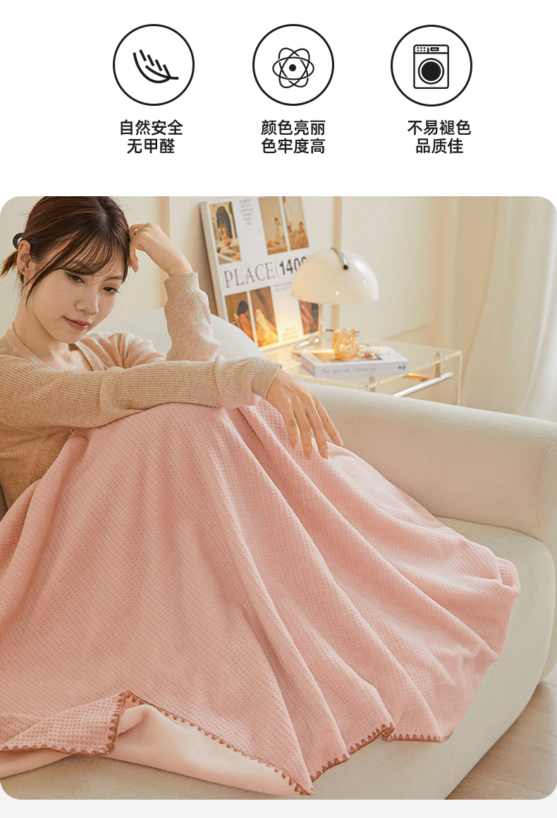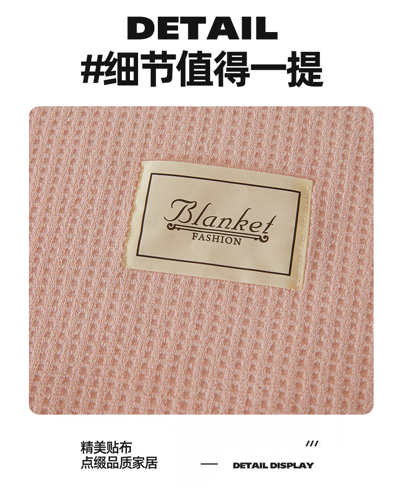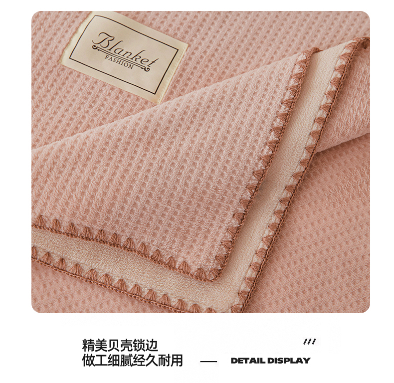商品名称:雯豆家纺 2025新品华夫格毛毯盖毯双层加厚办公室披肩毯子 自由风-密合粉