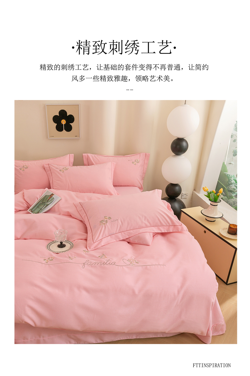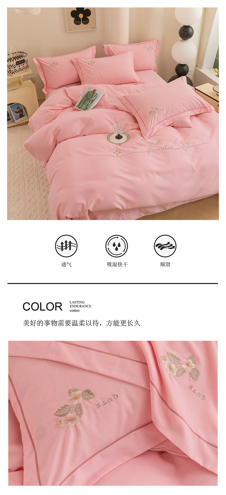 商品名称:绒博士 2025新款全棉磨毛绣花四件套--依恋系列 依恋-粉玉