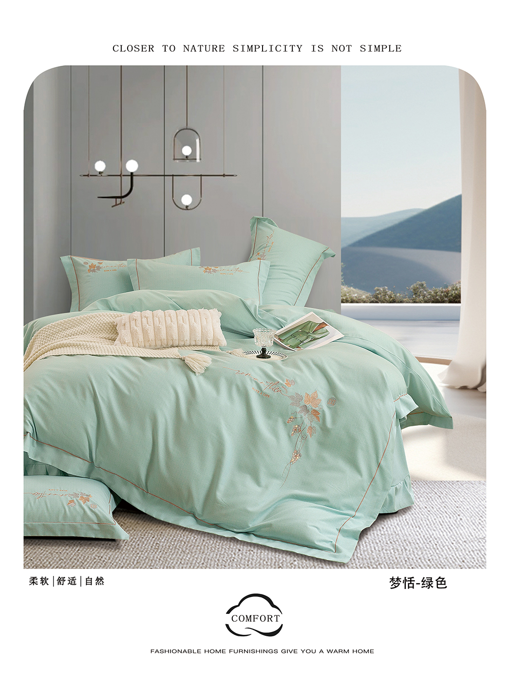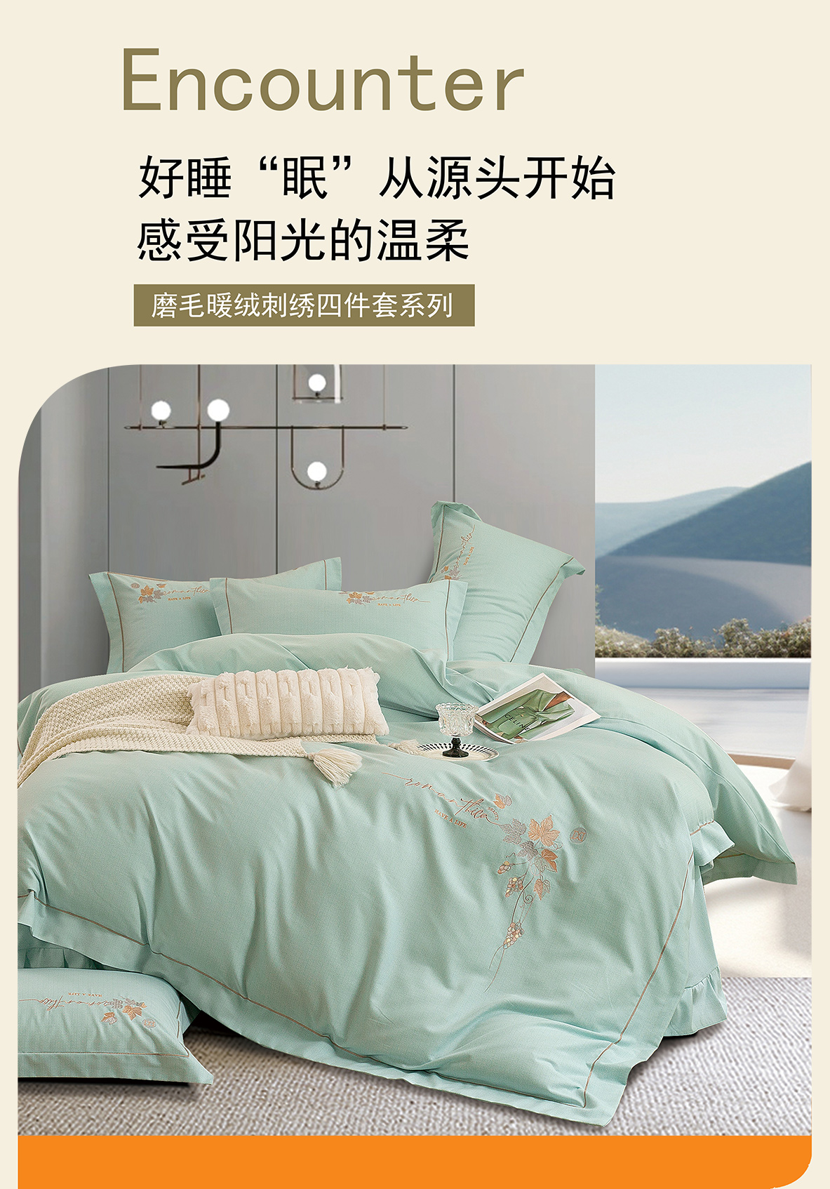 (总)绒博士 2025新款270克牛奶绒双拼角刺绣宽边款四件套--维也纳系列,维也纳-粉豆沙,维也纳-果绿,维也纳-浅咖,维也纳-浅蓝