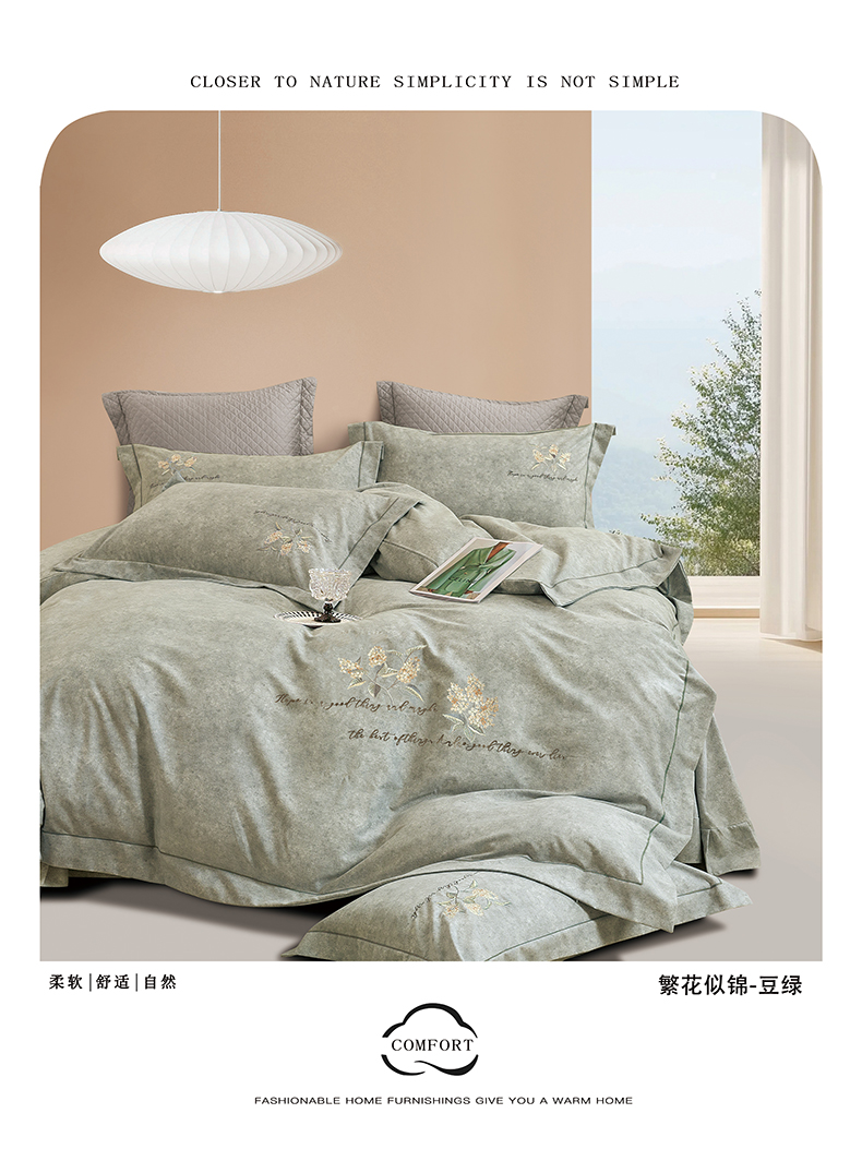 (总)绒博士 2025新款270克牛奶绒双拼角刺绣宽边款四件套--维也纳系列,维也纳-粉豆沙,维也纳-果绿,维也纳-浅咖,维也纳-浅蓝