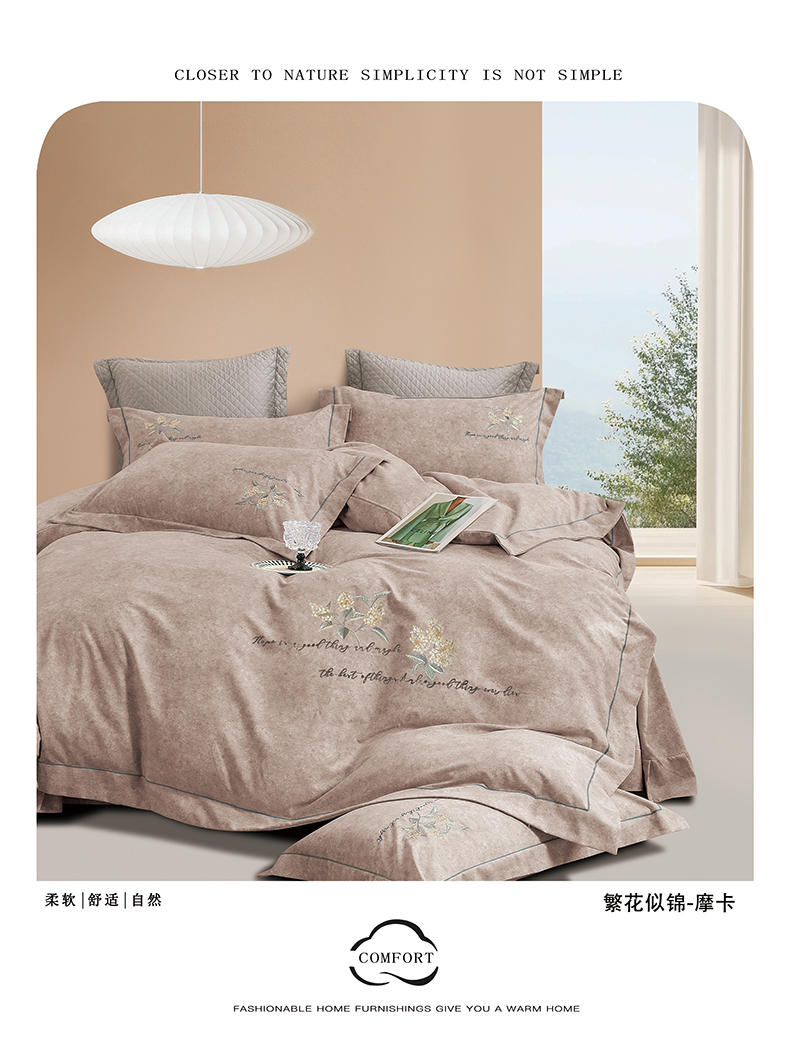 商品名称:绒博士 2025新款全棉磨毛绣花宽边款四件套--繁花似锦系列 繁花似锦-香芋粉