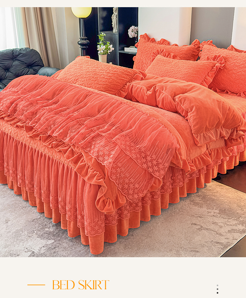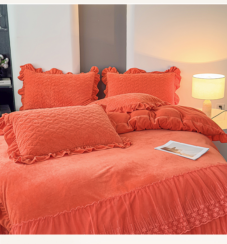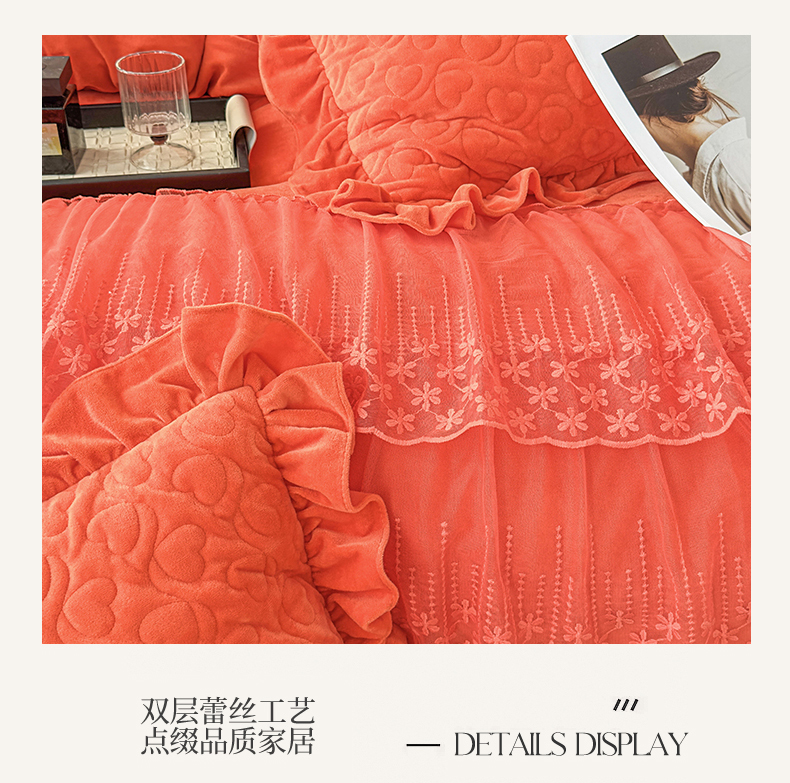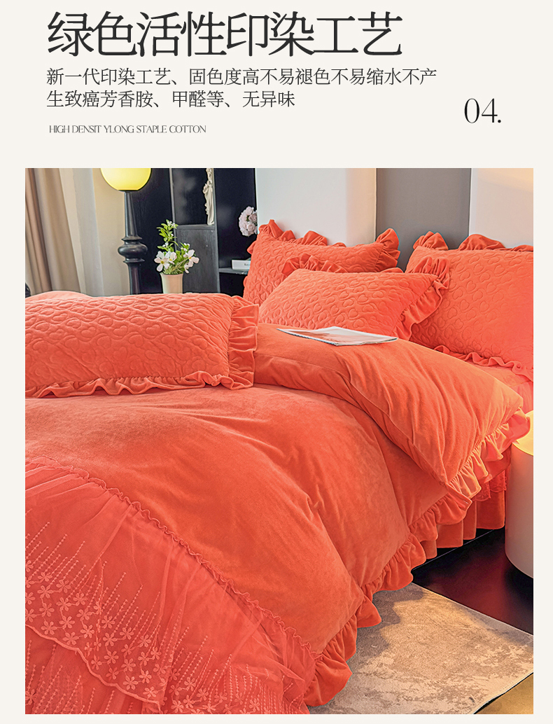(总)恒爱 2022秋冬水晶绒翩翩花舞夹棉床裙四件套,大红色,豆沙红,橄榄绿,公主粉,桔色,咖啡色,孔雀绿,拉菲红,罗兰紫,玫红色,美人玉,米白色,米驼色,抹茶绿,浅灰色,紫色