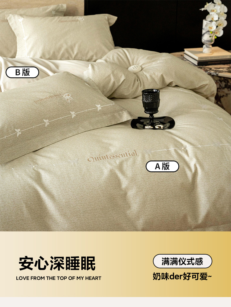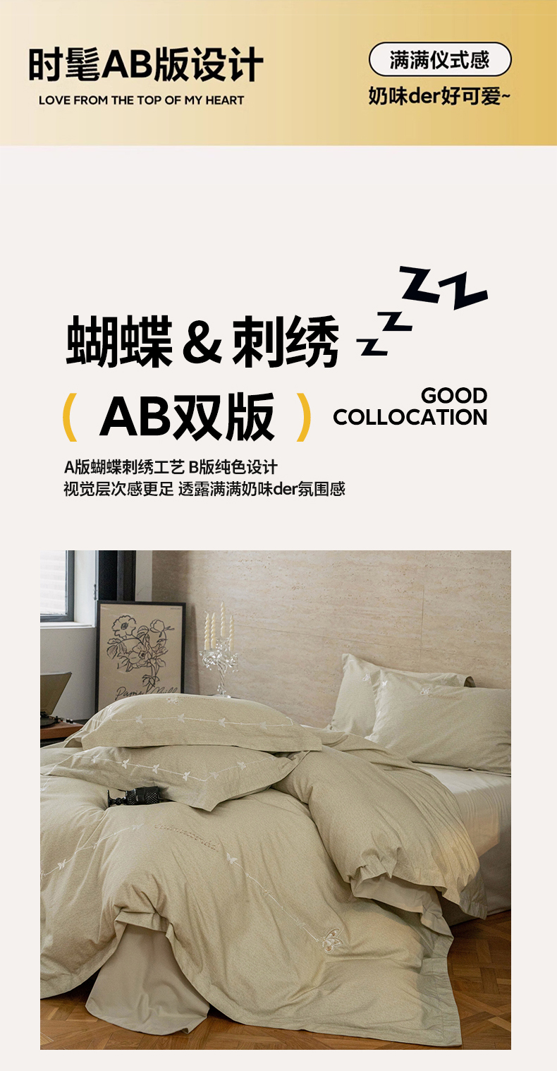 (总)红番天家居馆 (控价)2025新款全棉云柔棉磨毛+磨毛肌理纹+工艺款四件套-岚蝶(每款供货价的基础上一切活动券后+100),岚蝶 山岚,岚蝶 杏子灰,岚蝶 盈盈