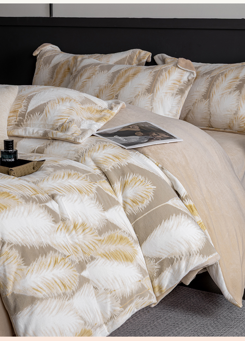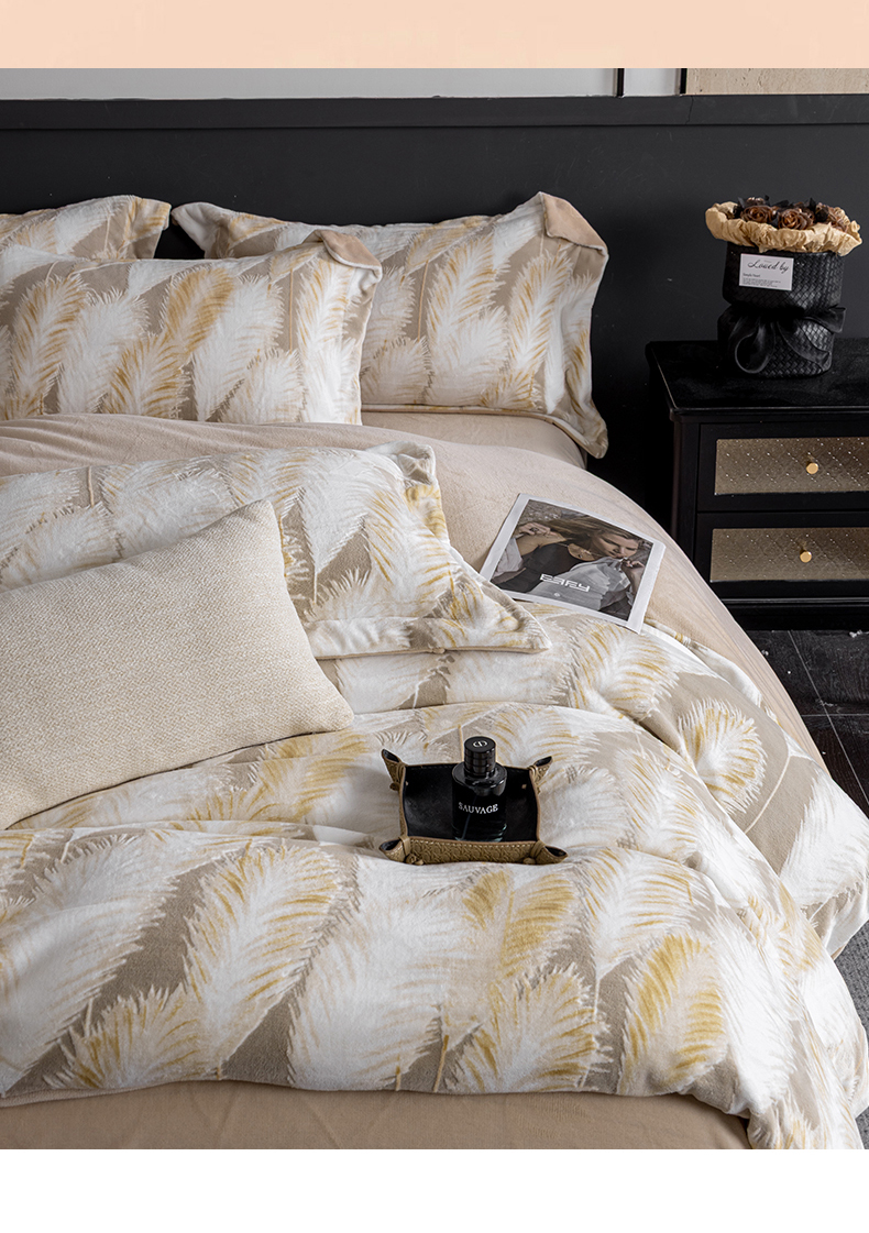 商品名称:罗优家纺 2025新款牛奶绒雕花绒四件套 芦苇花