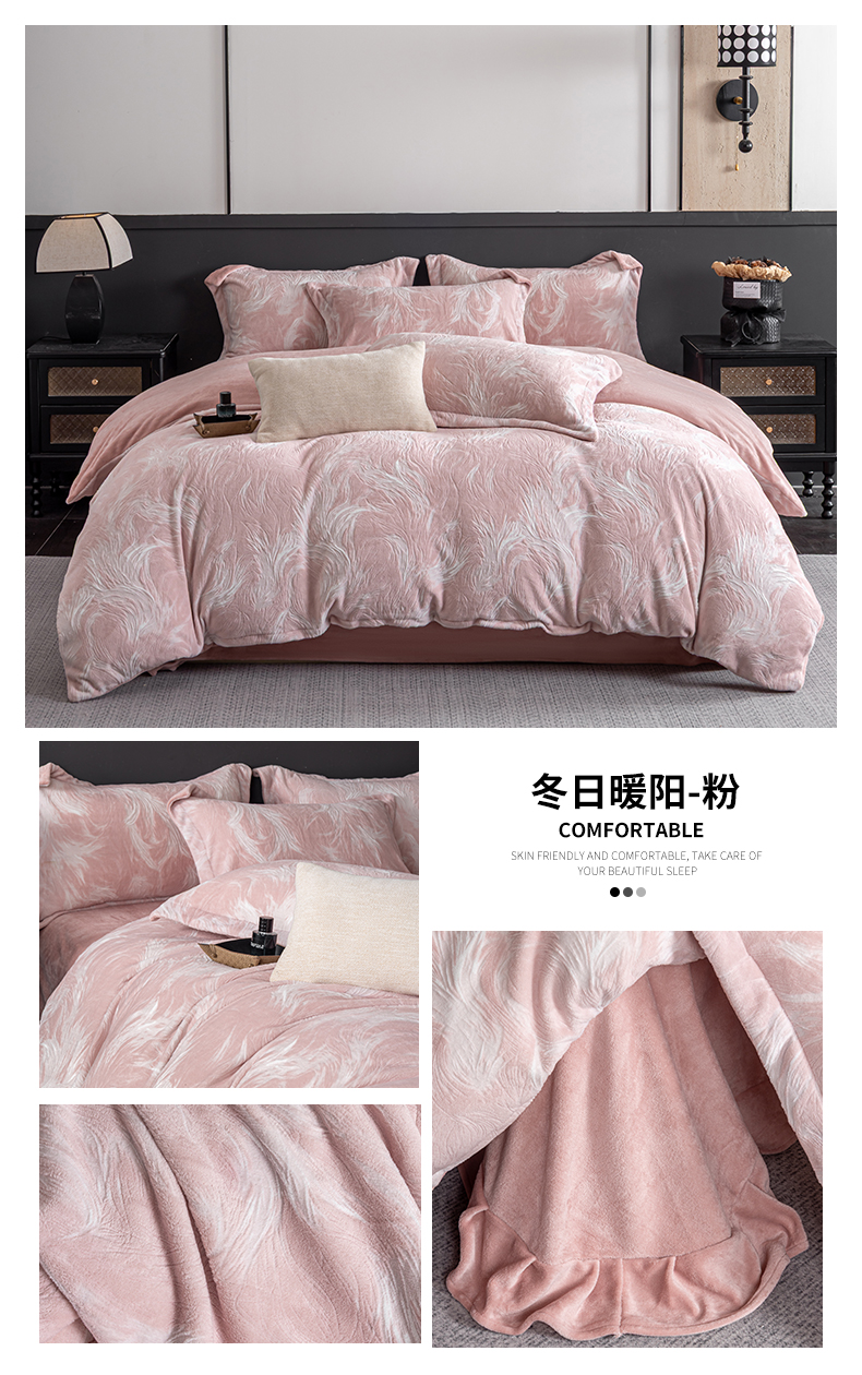 (总)罗优家纺 2025新款柔暖皱幔款暖绒四件套,浅粉,浅灰,浅蓝,浅杏
