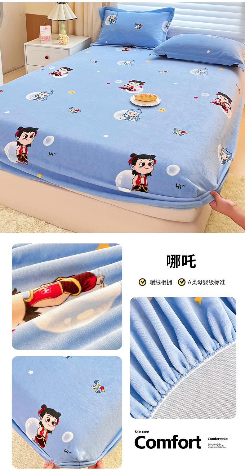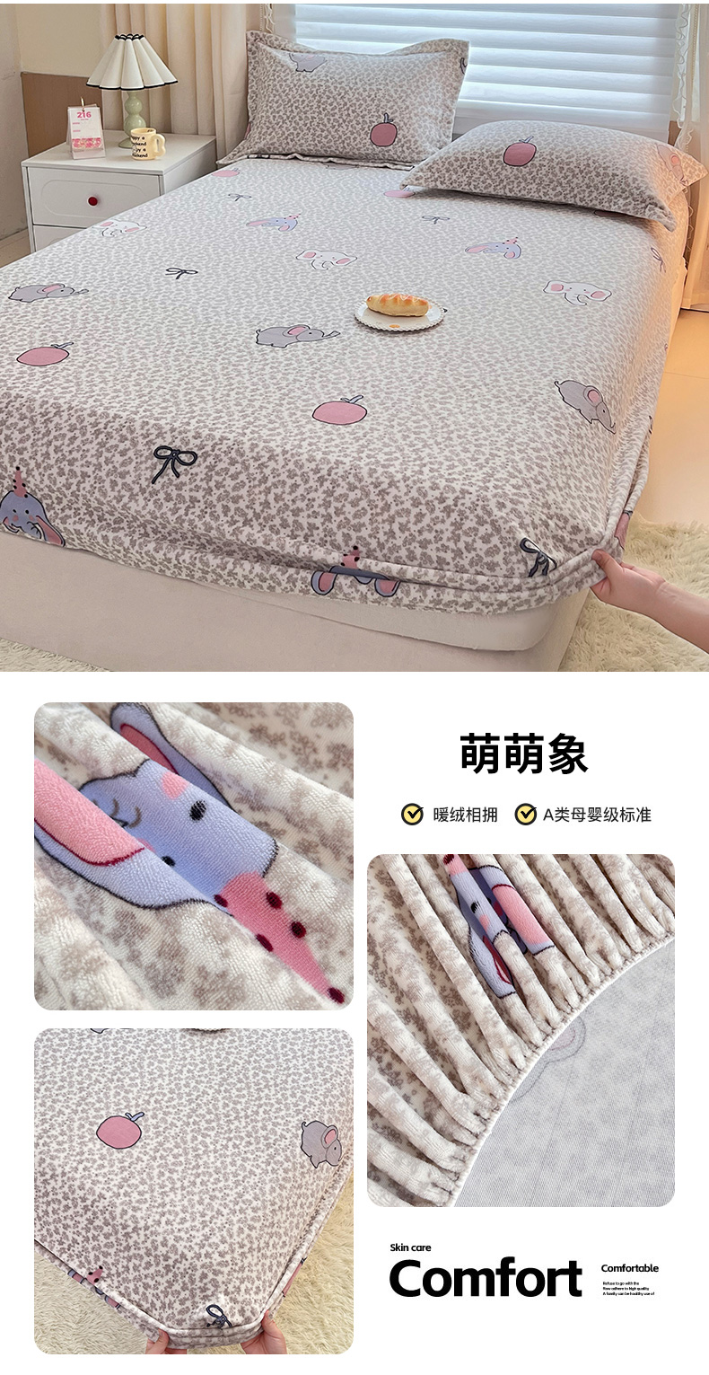 锦罗绣 2025新款230克牛奶绒印花单床笠 开心宝贝