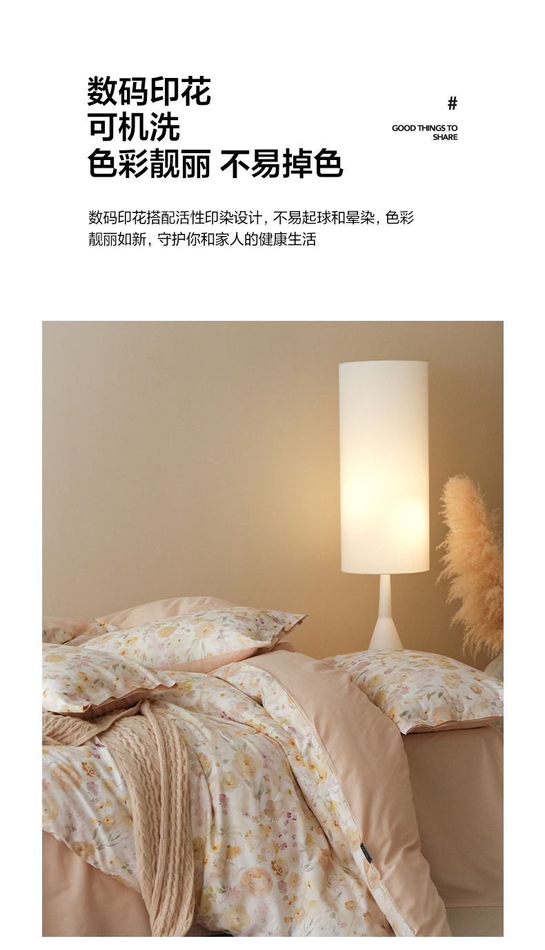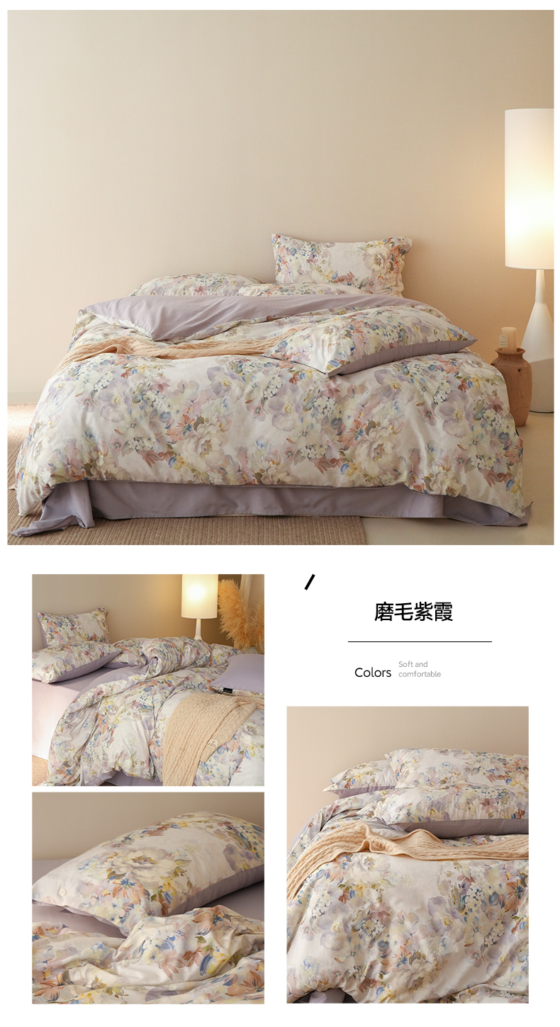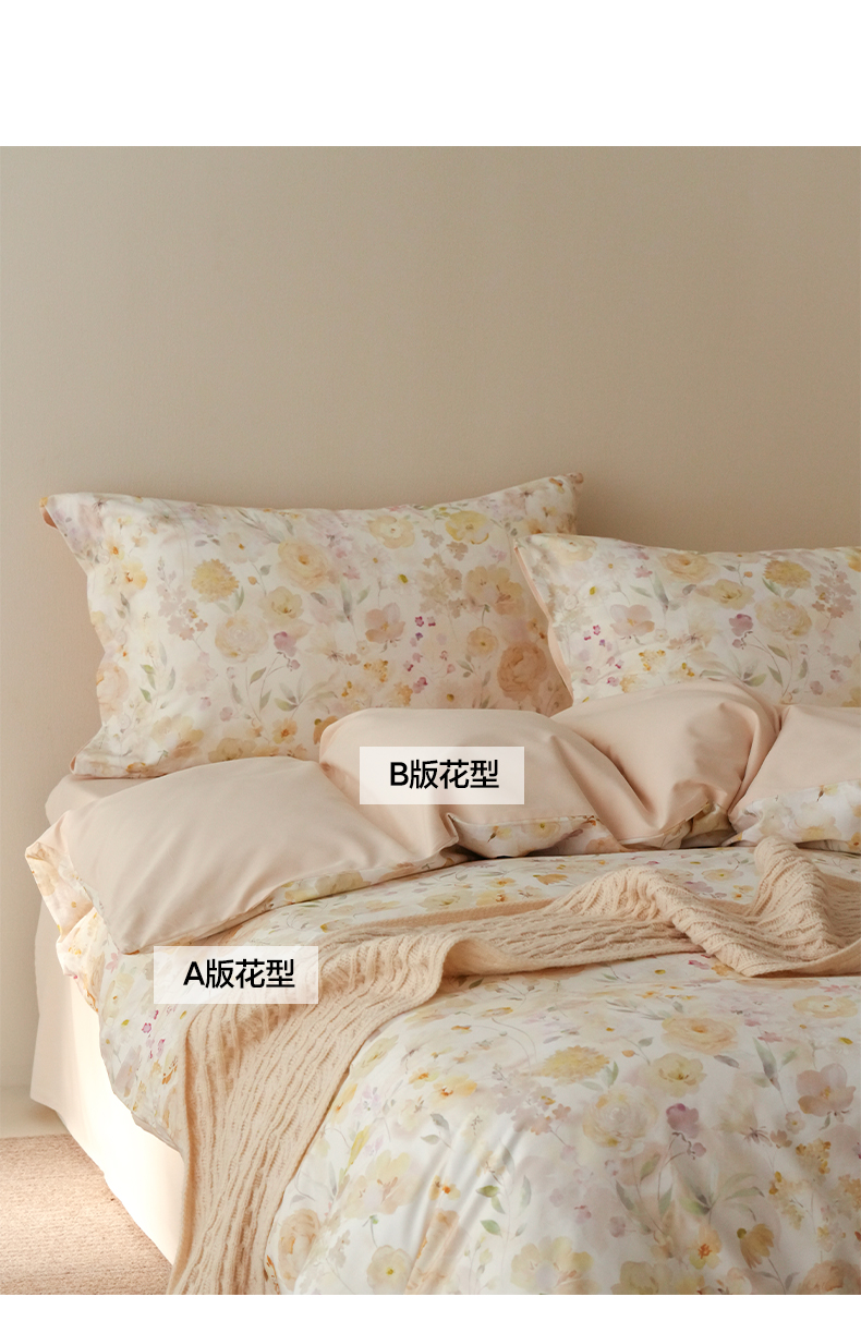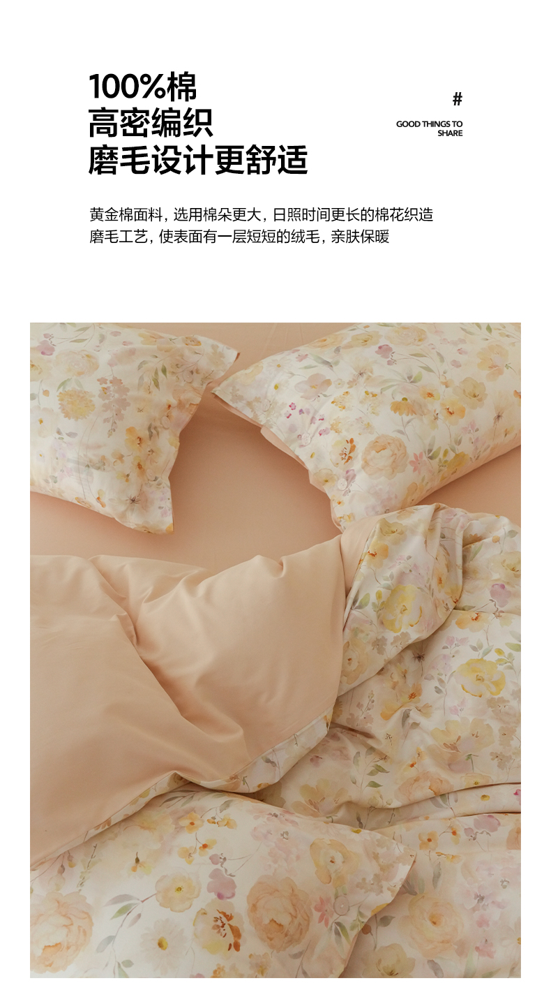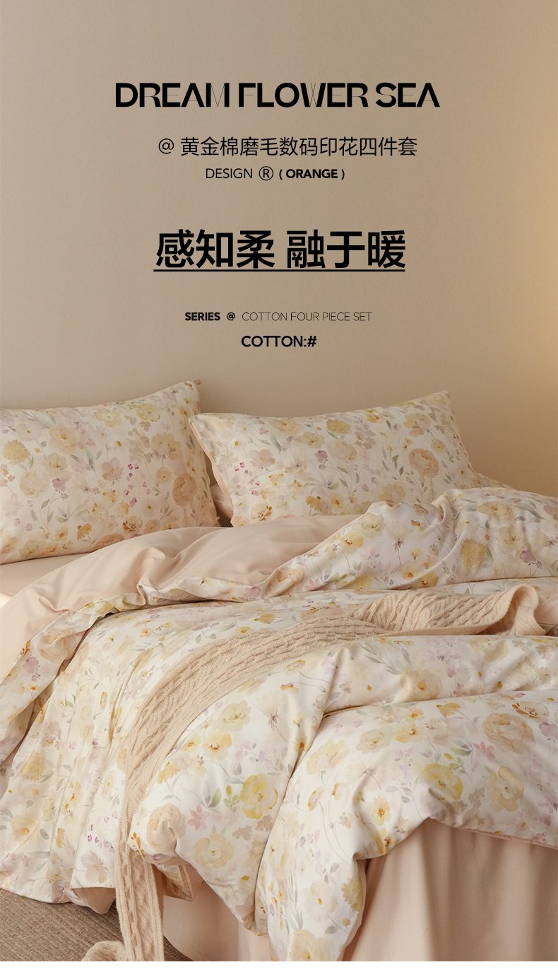 商品名称:三味舒屋 2025新款黄金棉磨毛数码印花四件套 磨毛悦夏