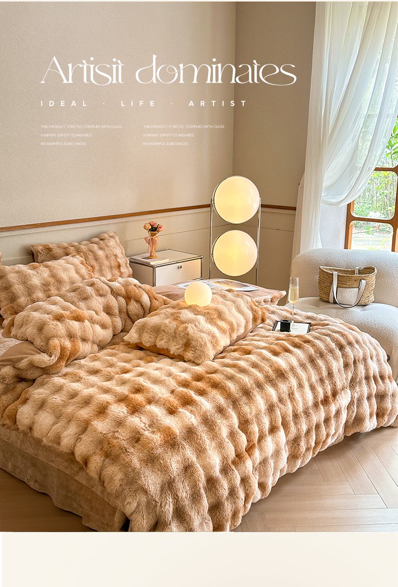 (总) 畅畅家纺 2023新款加厚AB版大泡泡绒皮草兔毛四件套,大泡泡高贵紫,大泡泡果粉,大泡泡果绿,大泡泡卡其,大泡泡奶白咖,大泡泡烟灰