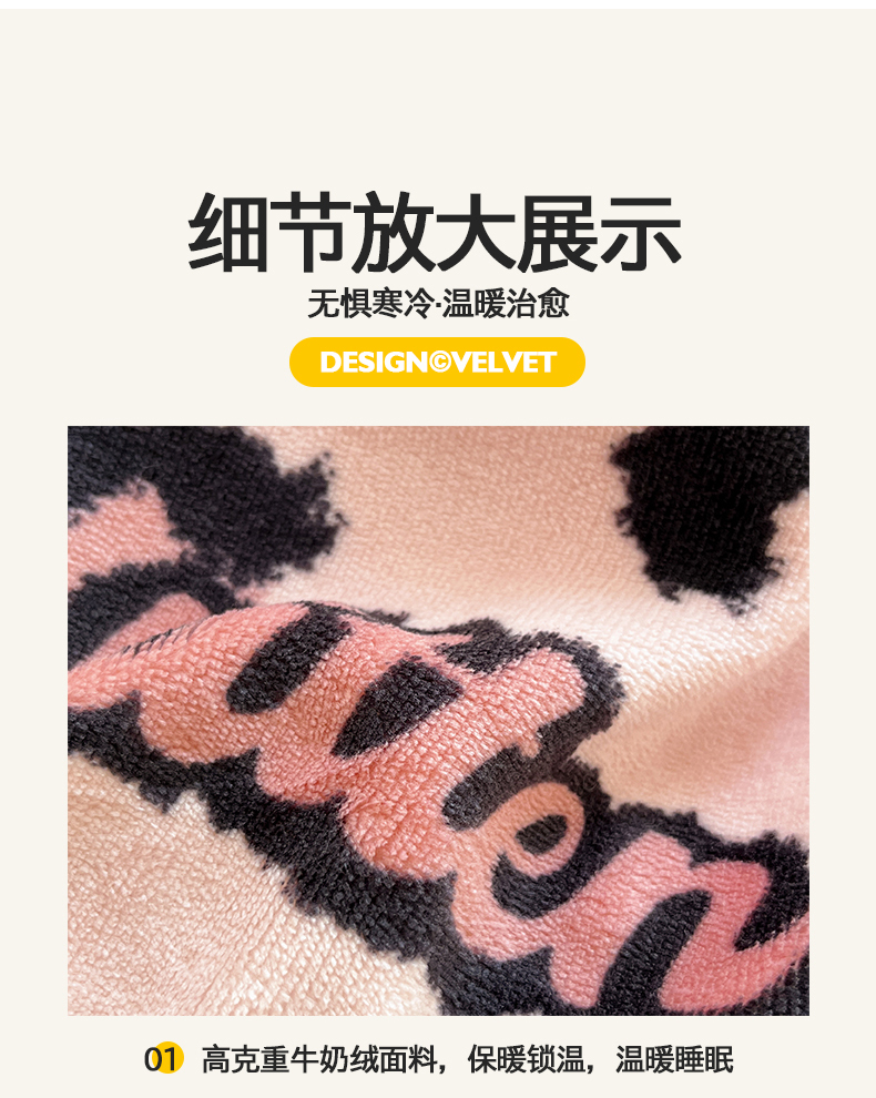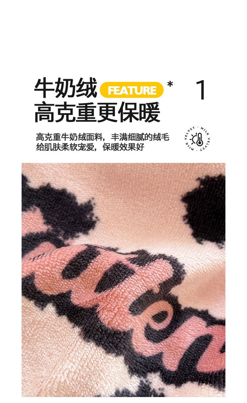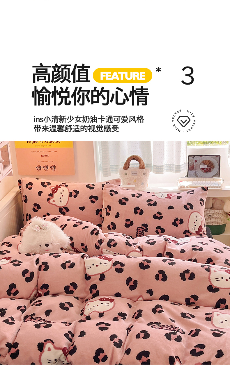 商品名称:金爱家 2025新款A类ins小清新少女奶油卡通可爱加厚牛奶绒四件套 绒-豹点点粉猫