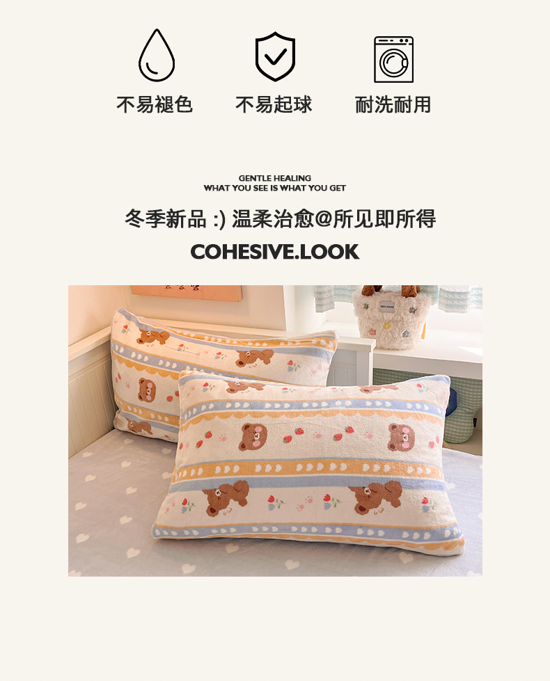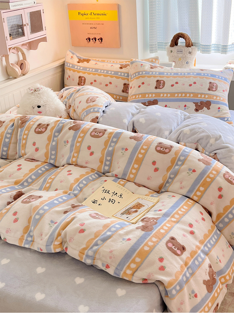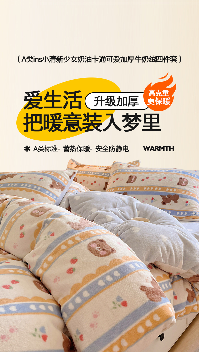 金爱家 2025新款A类ins小清新少女奶油卡通可爱加厚牛奶绒四件套 绒-可爱熊