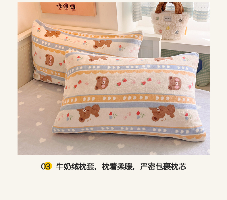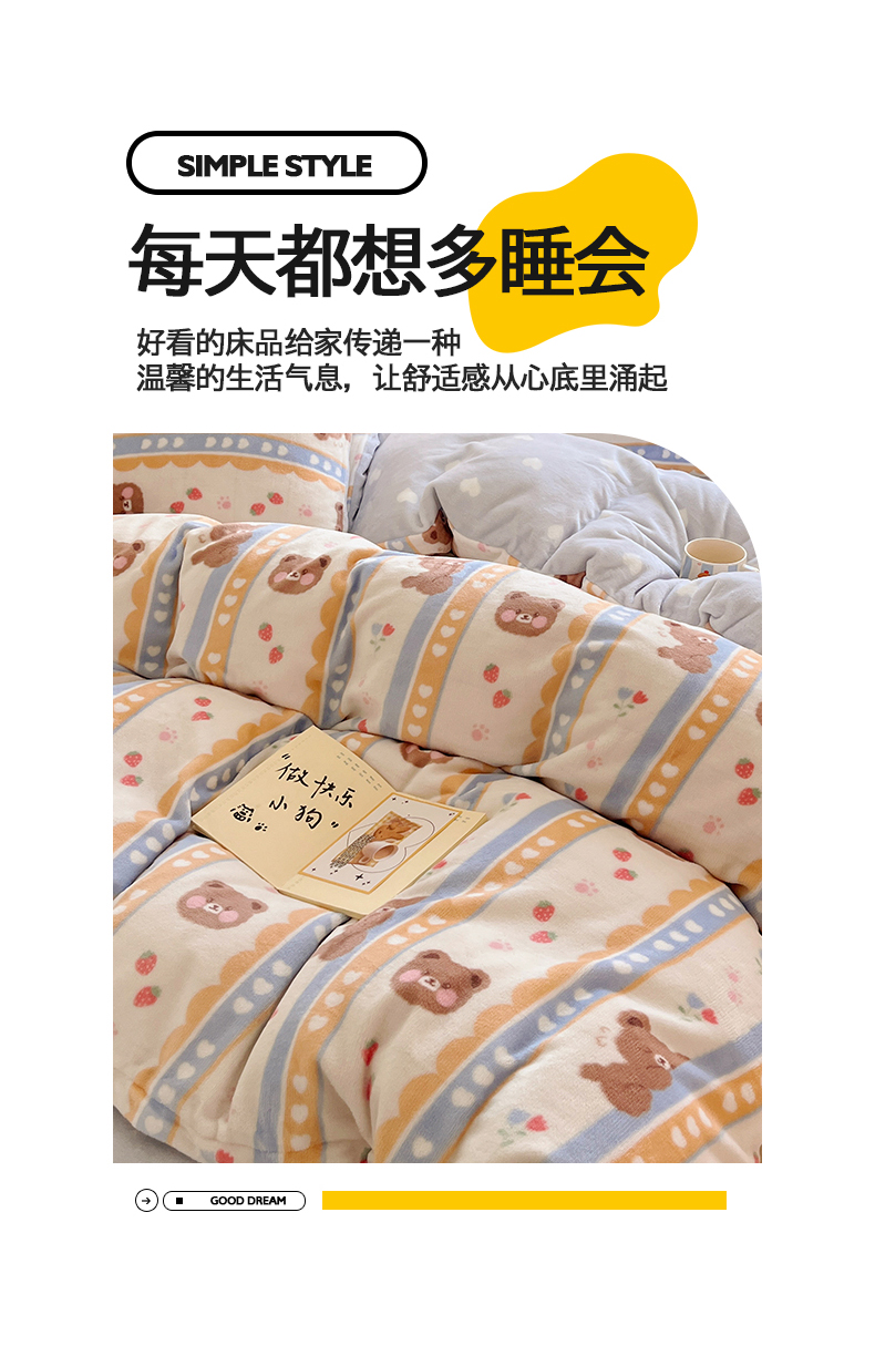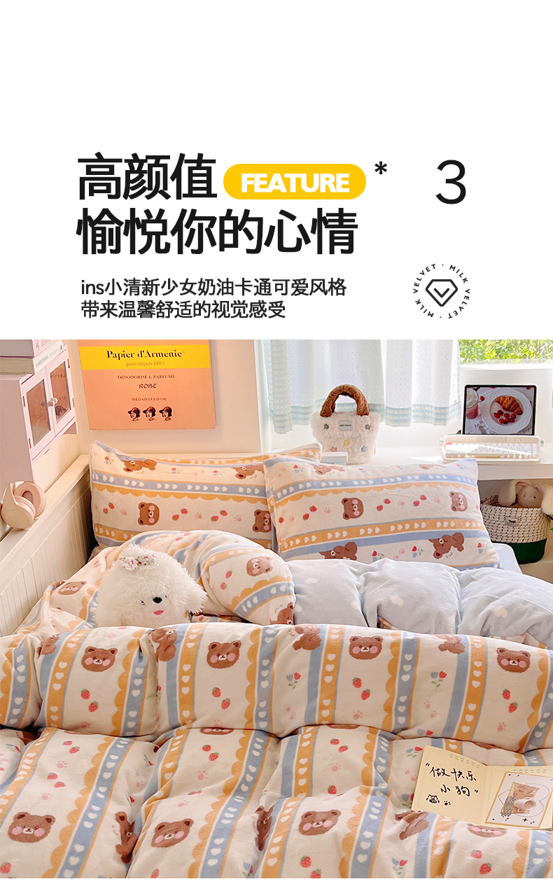 商品名称:金爱家 2025新款A类ins小清新少女奶油卡通可爱加厚牛奶绒四件套 绒-可爱熊