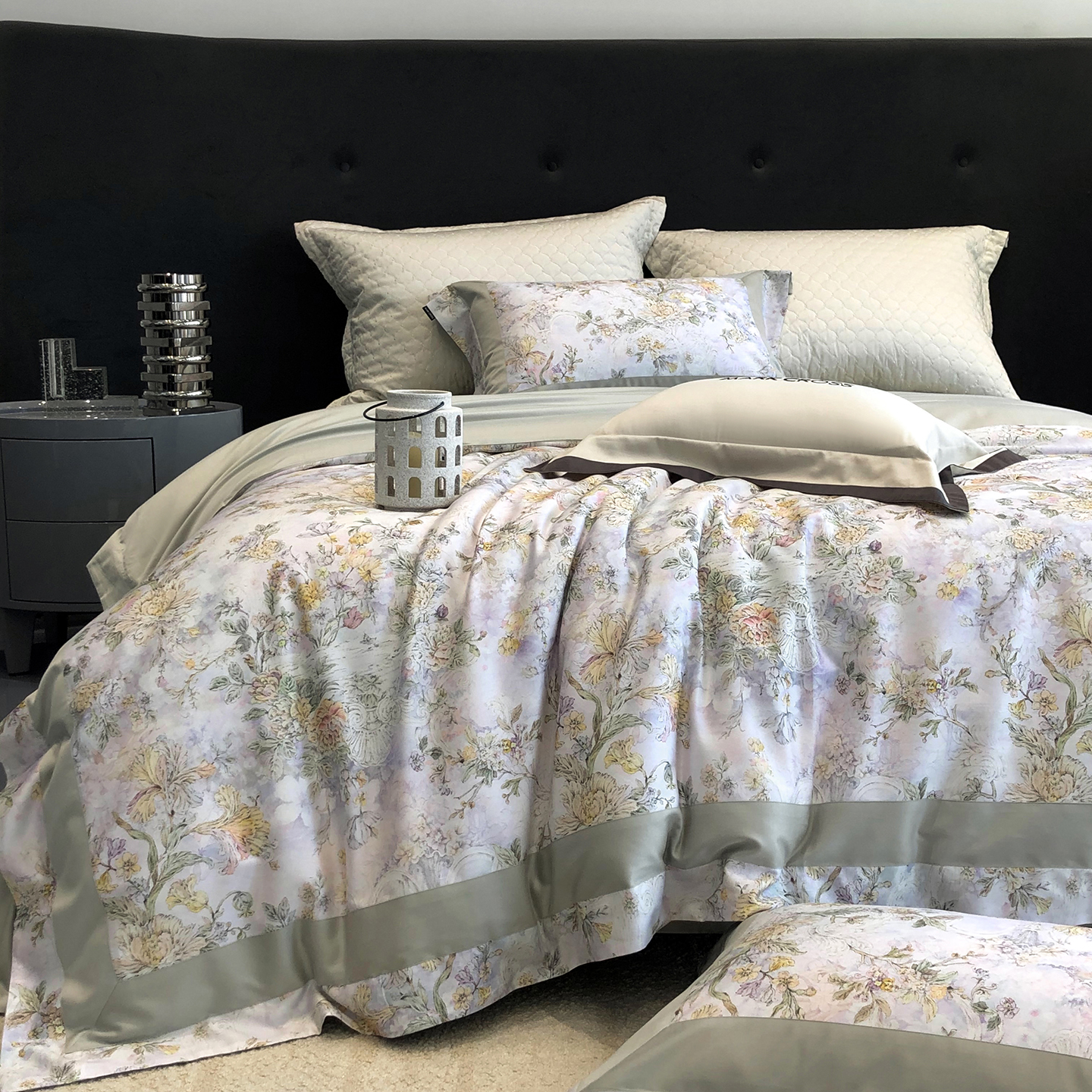 (总)佳汐蓝家纺 2025 春夏新品60支兰精天丝数码印花四件套-小苍兰花语,白,粉,蓝