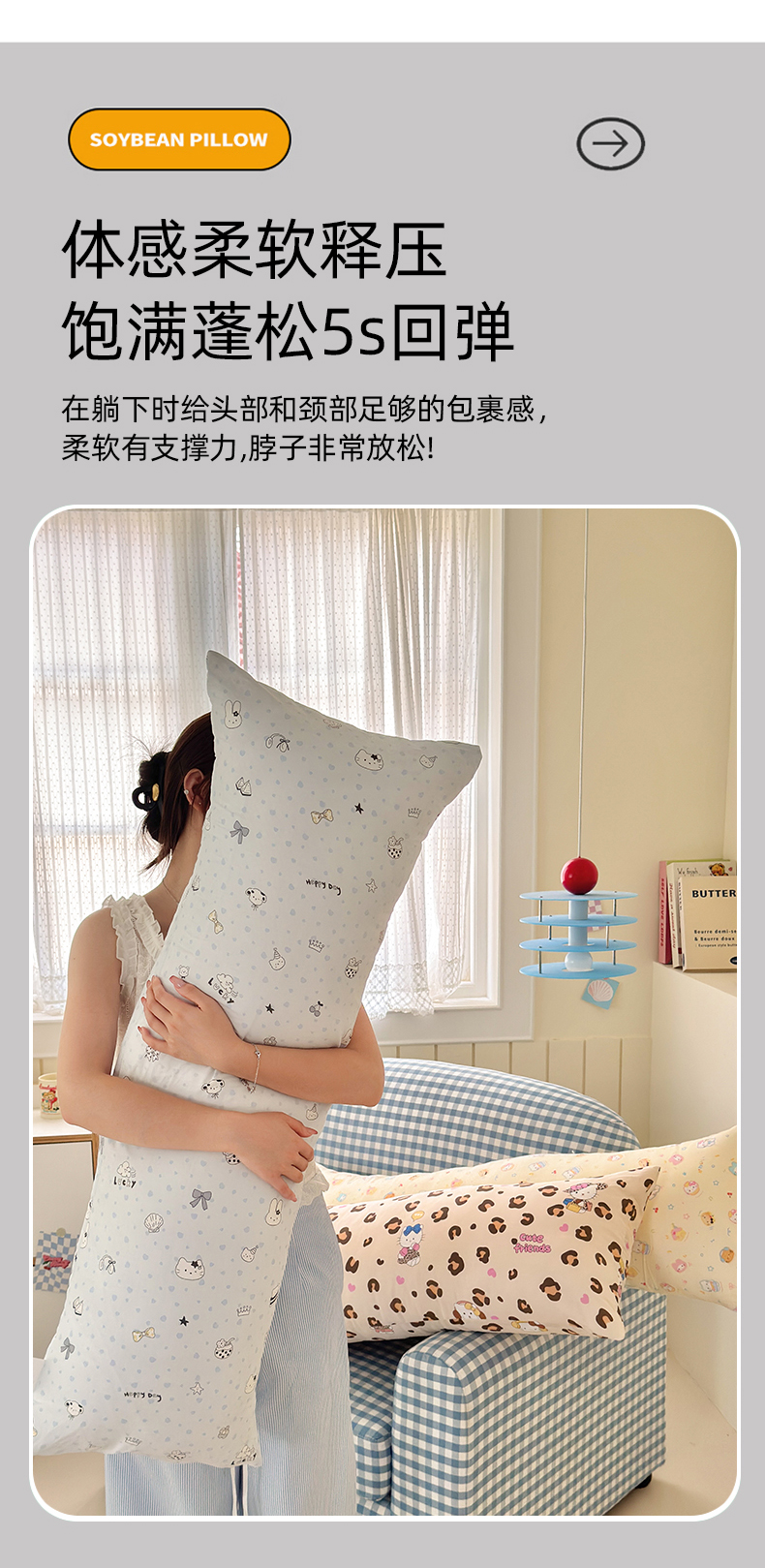 商品名称:乐童家纺 2025新款解压神器夹腿长条抱枕 组合图