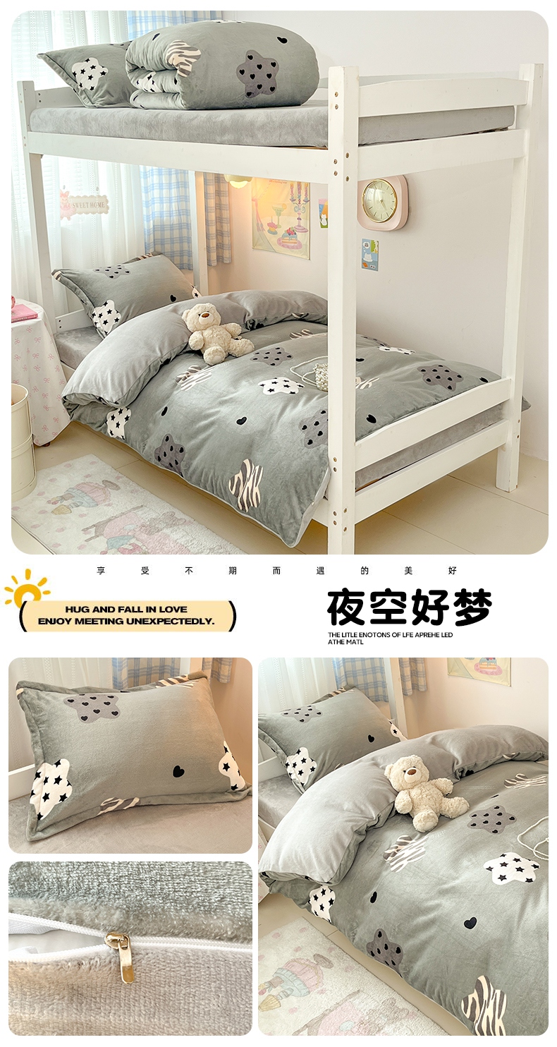 当前位置: 91家纺网 > 商品网购 > 床品套件 > 三件套 > 川悦生活 2025新款加厚保暖高克重牛奶绒宿舍三件套 晴空小喵