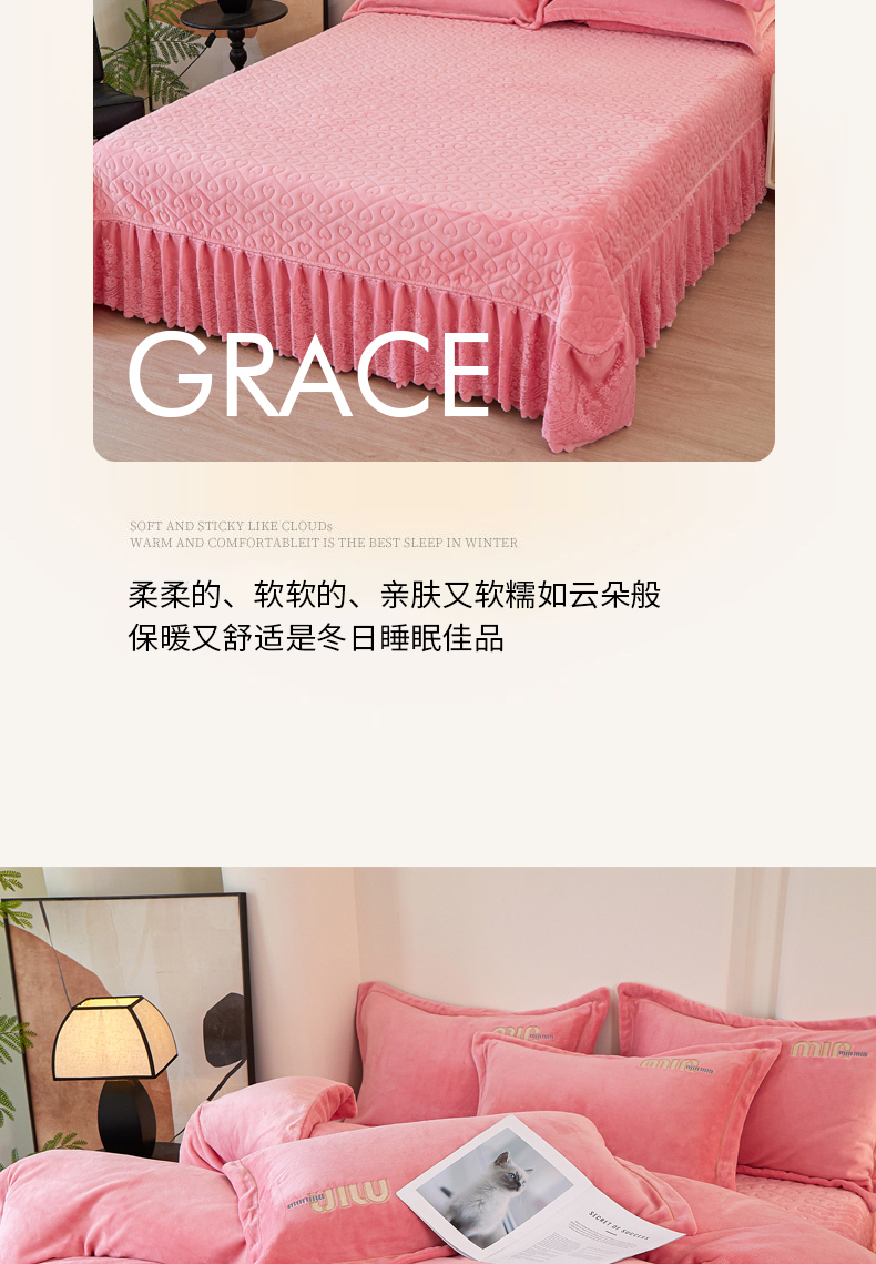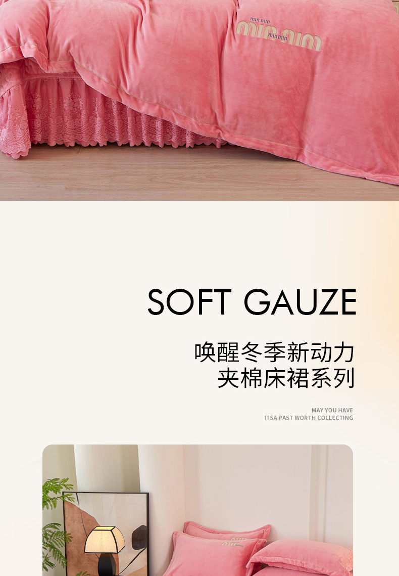 (总)程百万家纺 2025新款A类婴儿绒夹棉加厚床裙床盖,桃粉,宝蓝,大红,豆沙,橘黄,浅灰,紫色
