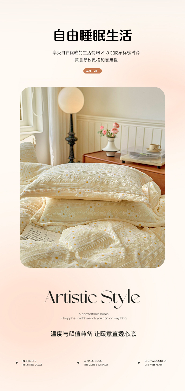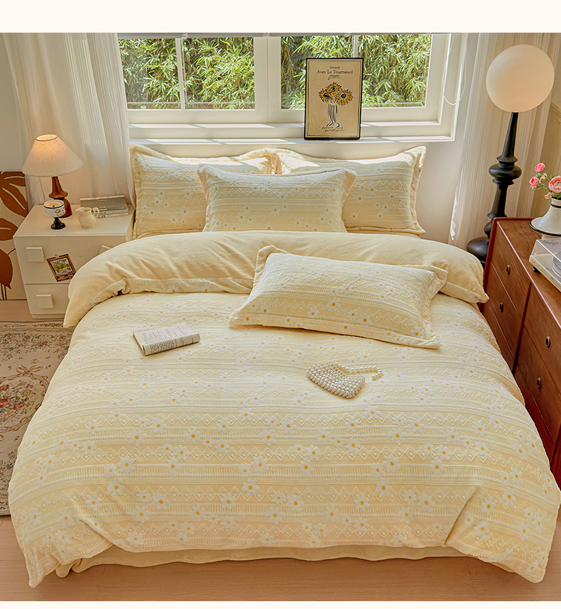 商品名称:娜娜 2025新款高克重牛奶绒百花齐放系列四件套 百花齐放-奶昔黄