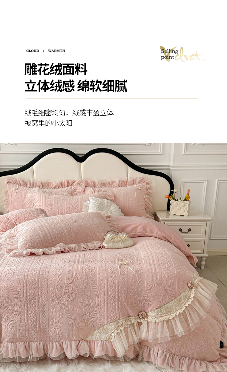 (总)金绣美居 2025新款加厚雕花牛奶绒床盖款四件套-郁金香(控价不低于219/229),郁金香-湖水蓝,郁金香-新媚紫,郁金香-玉色