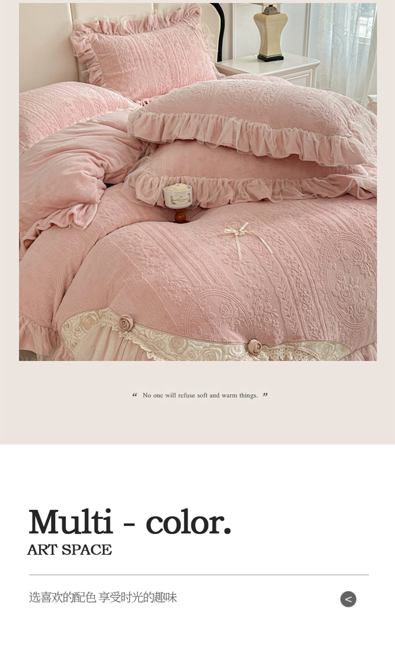 (总)金绣美居 2025新款卡通贴布绣款牛奶绒四件套-公主,公主粉,公主蓝