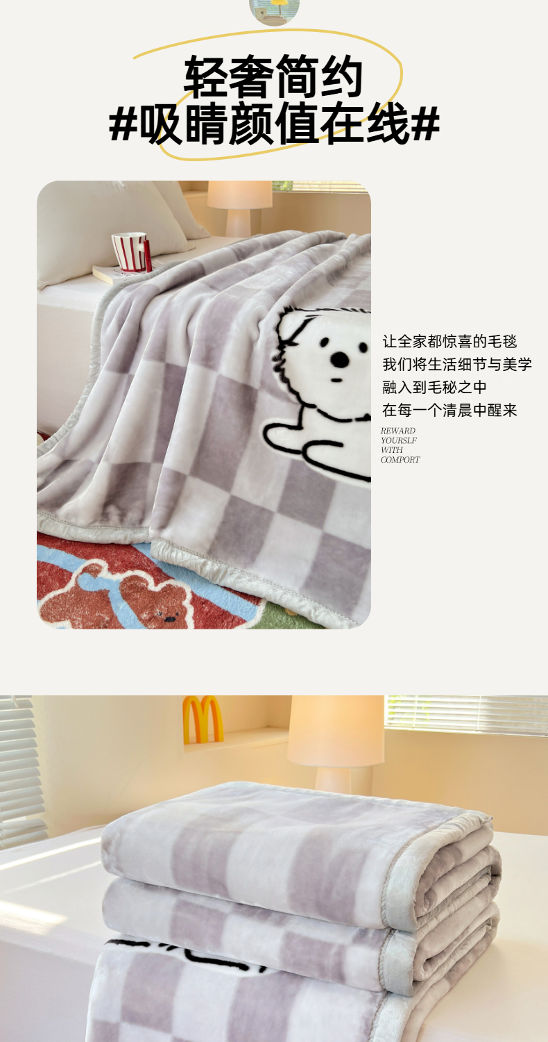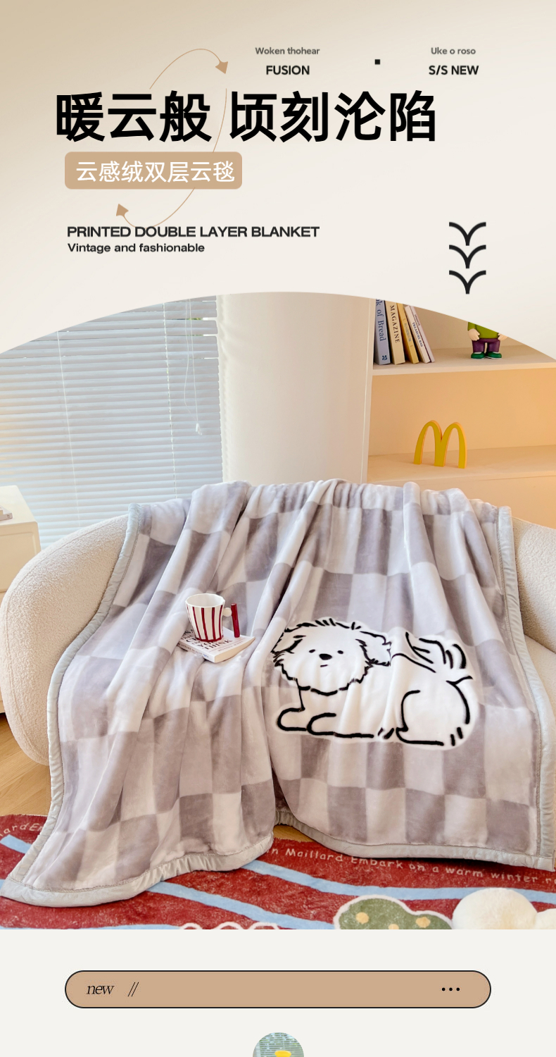 凯轩毛毯网销专供 2025新款双层学生云毯毛毯保暖毯 炸毛狗狗