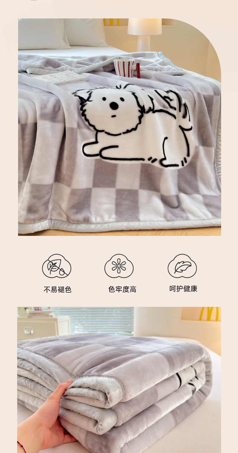 (总)凯轩毛毯网销专供 2025新款双层学生云毯毛毯保暖毯,爱心狗-棕,爱心狗-灰,格洛米,佳丽-黑,佳丽-灰,佳丽-卡其,西高地,炸毛狗狗