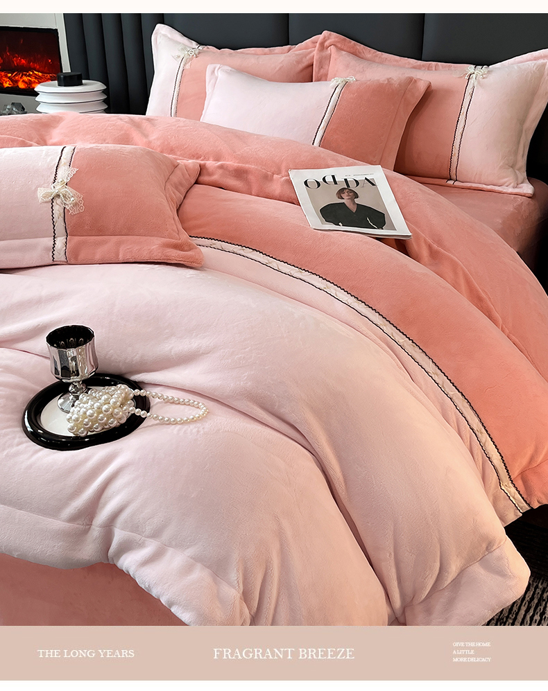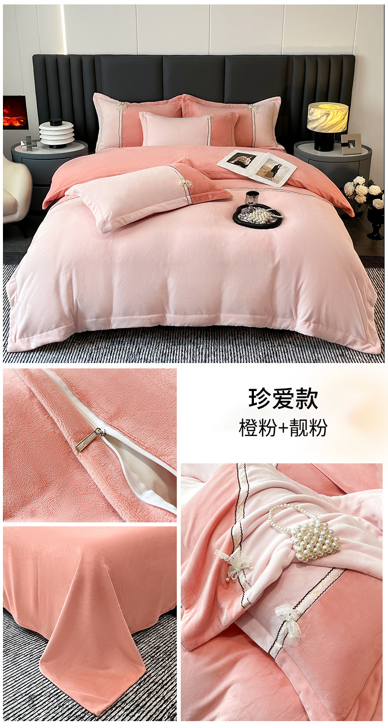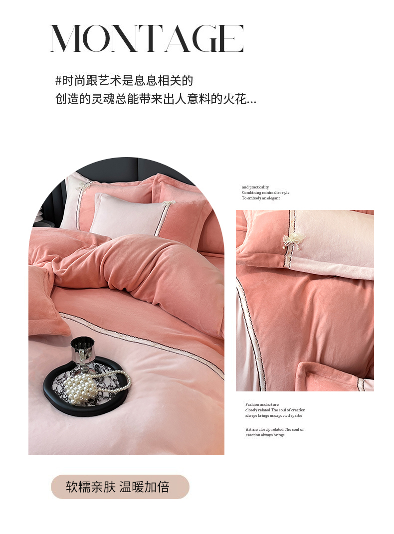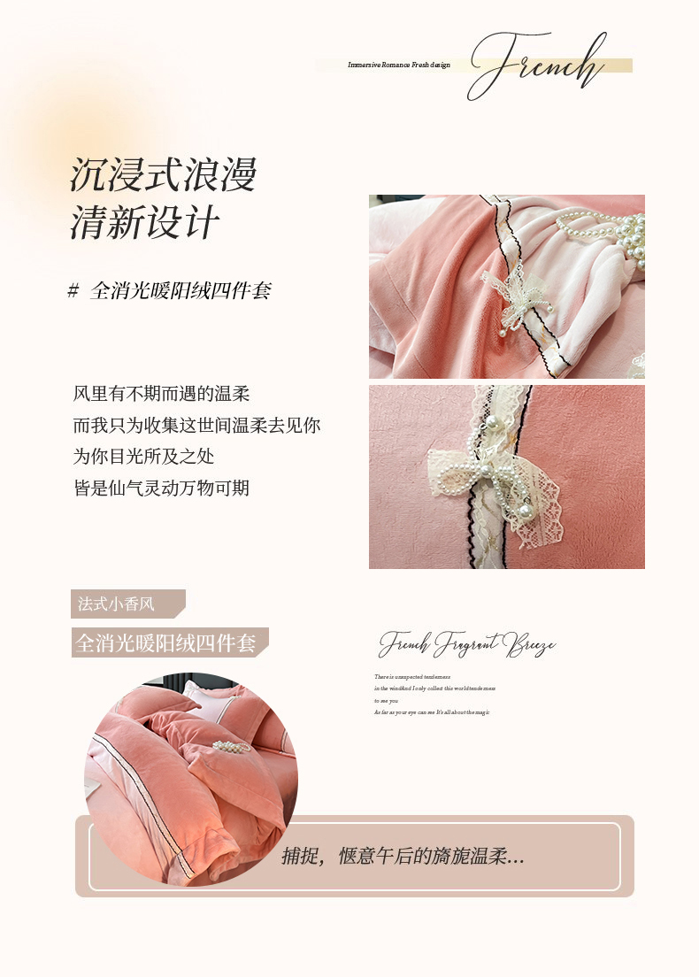 当前位置: 91家纺网 > 商品网购 > 床品套件 > 四件套 > 其它四件套 > 馨梦缘 2025新款全消光暖阳绒四件套 珍爱款-橙粉+靓粉