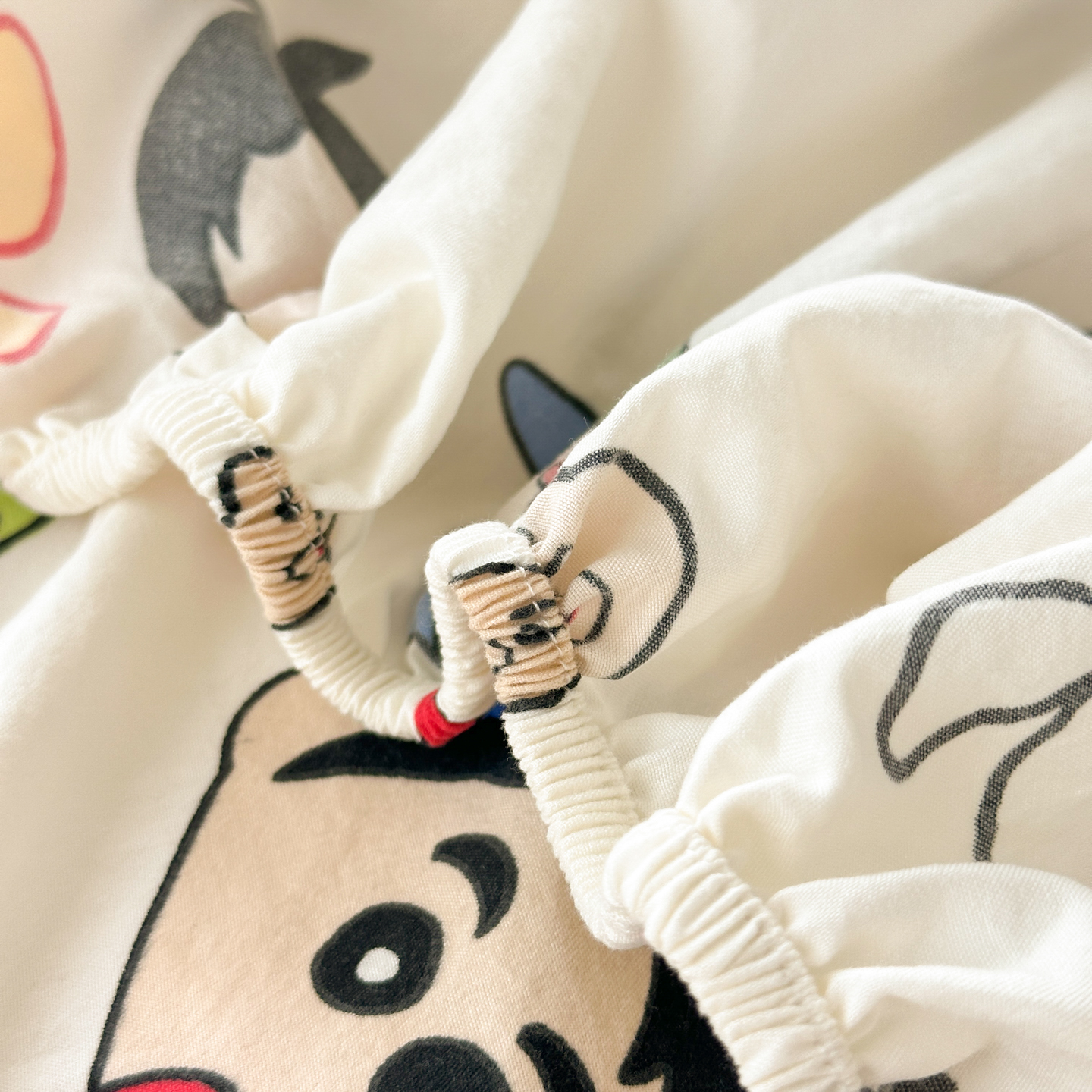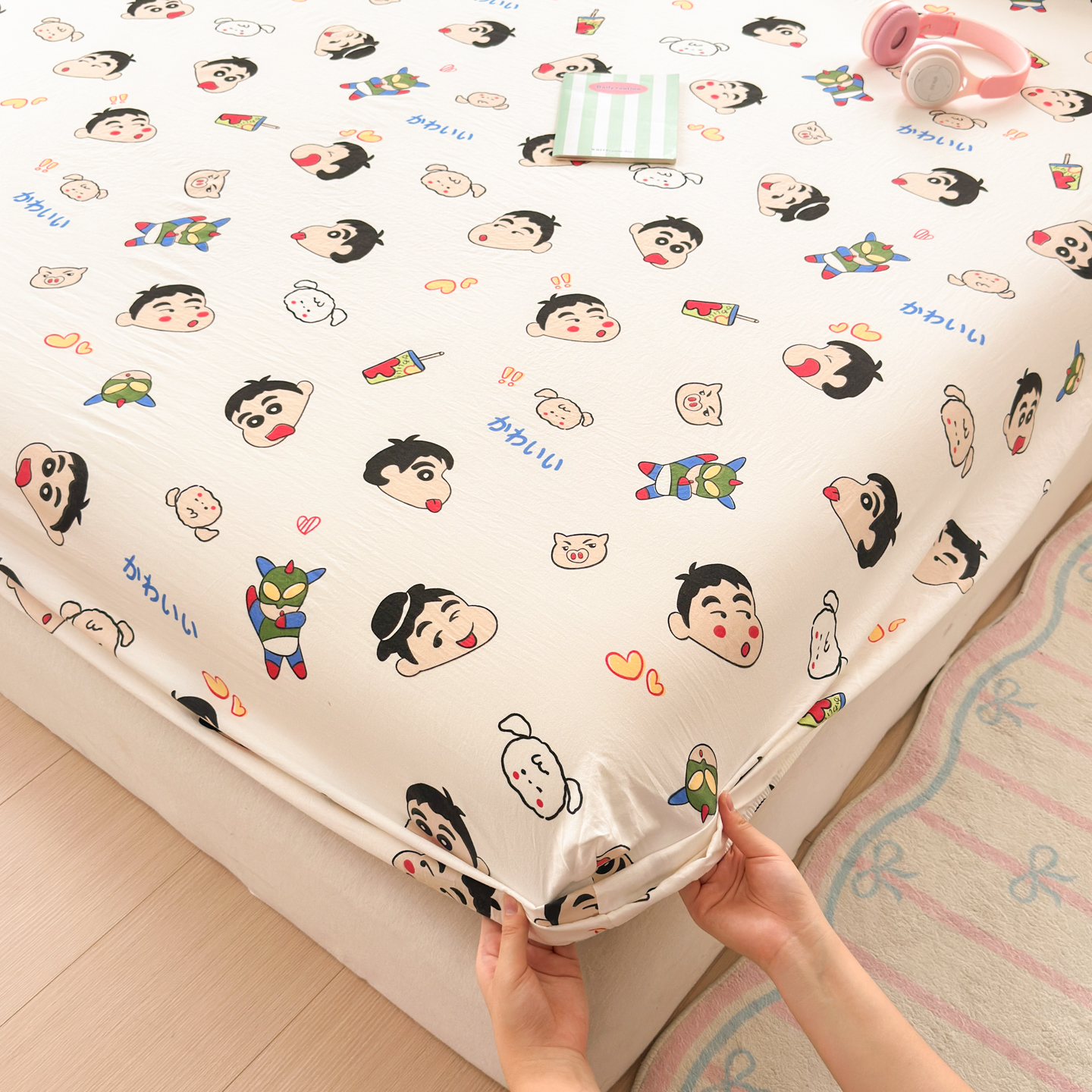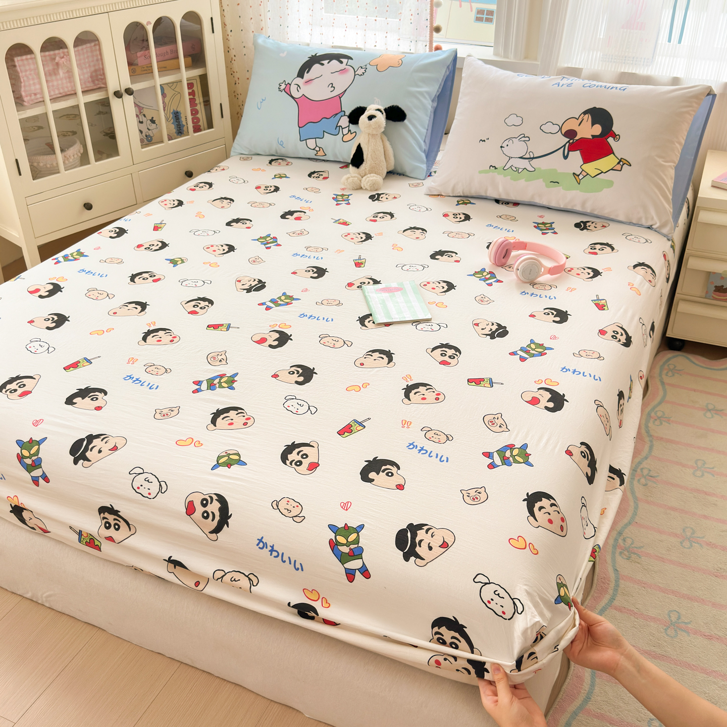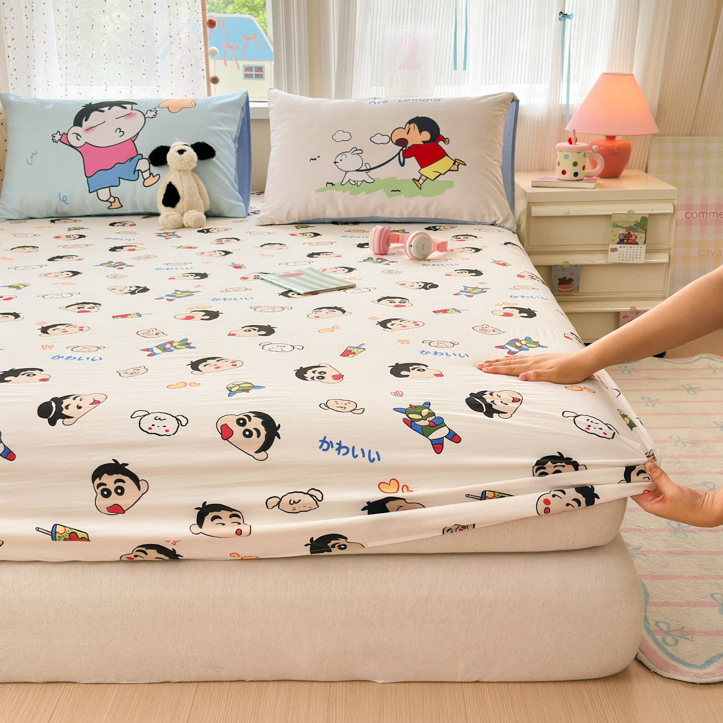 一霖家纺 2025新款云朵棉小清新印花床笠系列 单床笠-小新与小白
