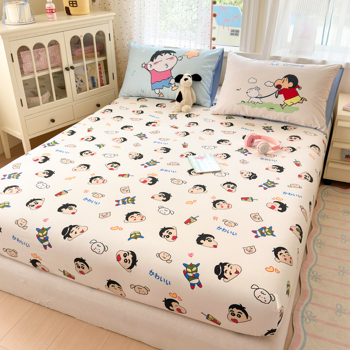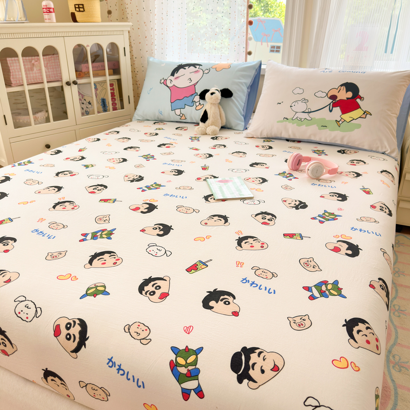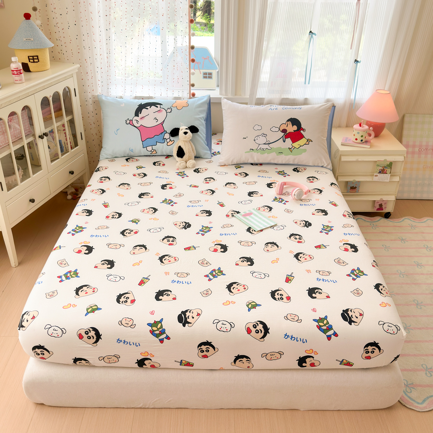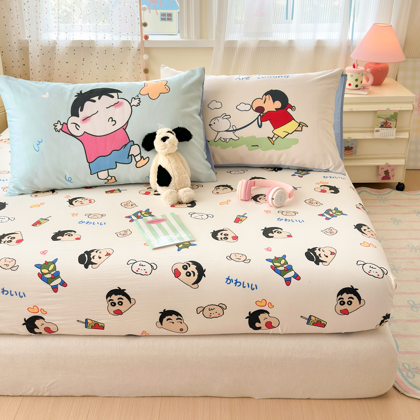 一霖家纺 2025新款云朵棉小清新印花床笠系列 单床笠-小新与小白
