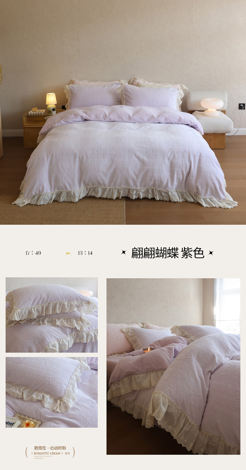 (总)万盛家纺 2025新款韩版牛奶绒花边四件套-翩翩蝴蝶,翩翩蝴蝶 粉色,翩翩蝴蝶 蓝色,翩翩蝴蝶 绿色,翩翩蝴蝶 紫色
