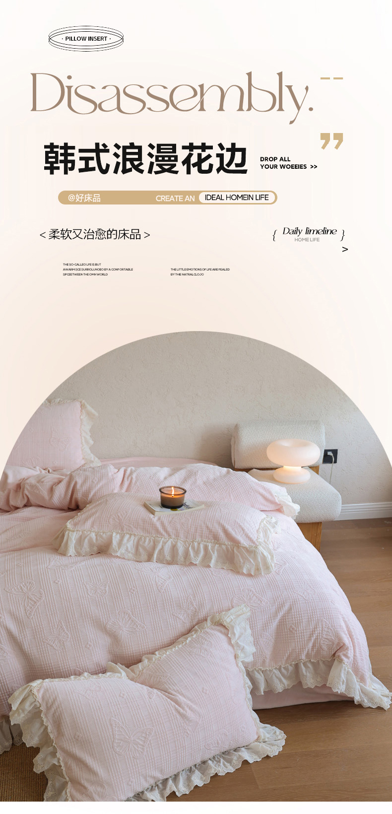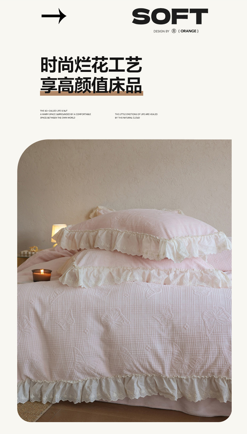 商品名称:万盛家纺 2025新款韩版牛奶绒花边四件套-翩翩蝴蝶 翩翩蝴蝶 粉色
