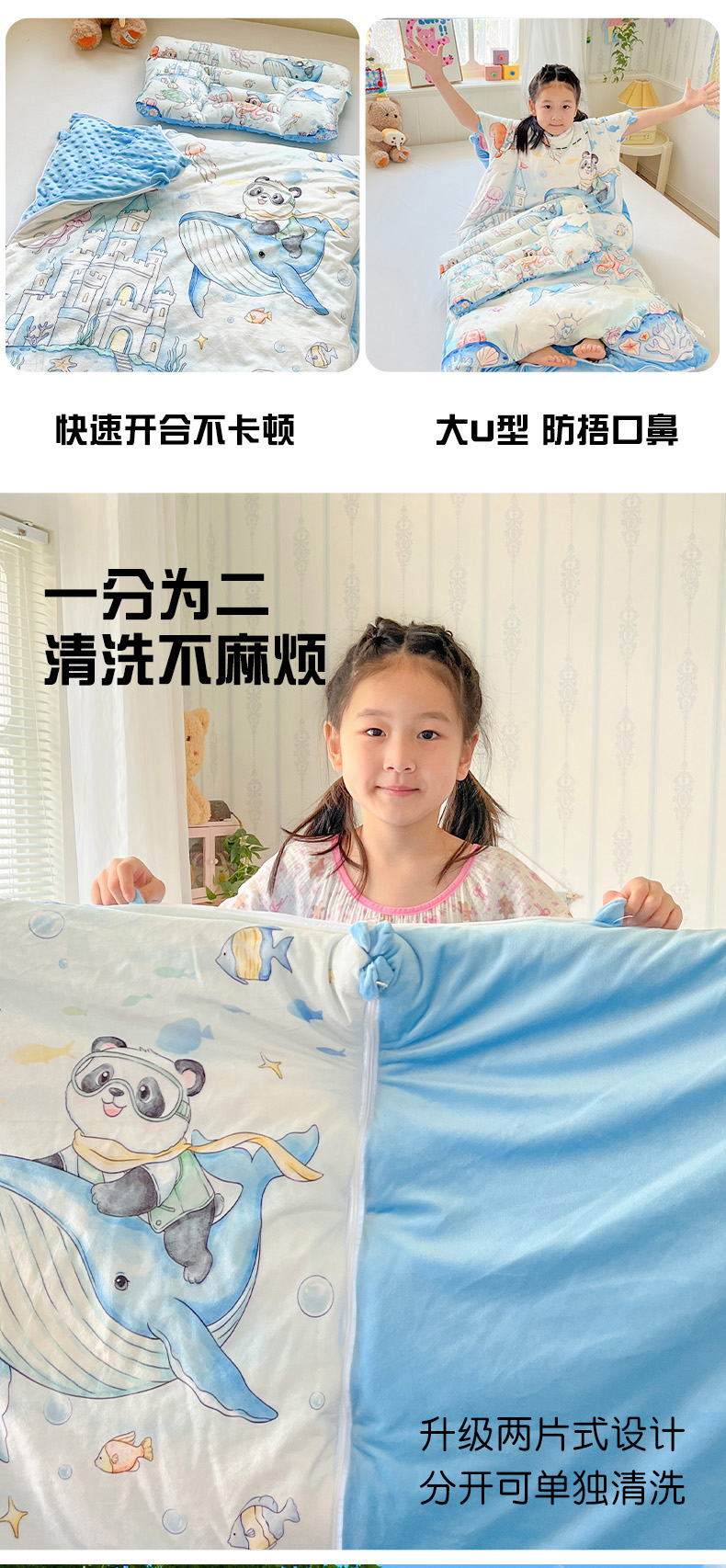 沁童儿童用品店 2025新款小环抱MAX防踢被儿童被被子被芯 海底