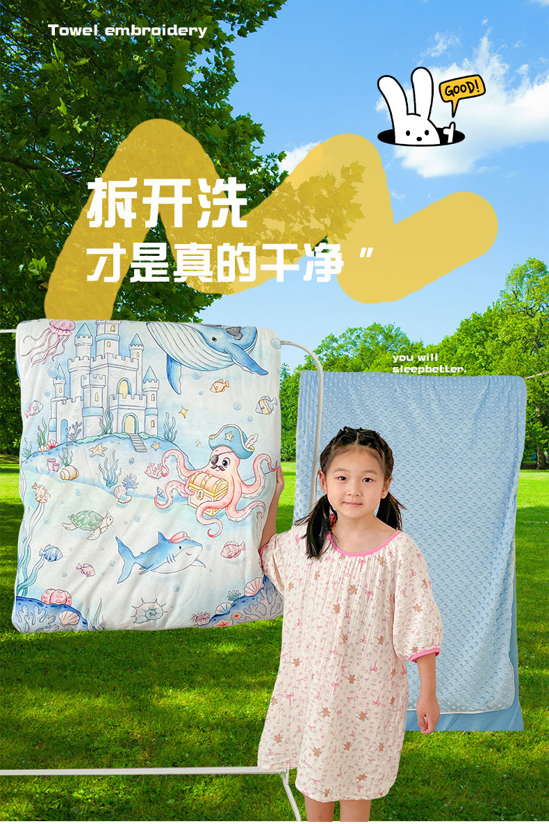 (总)沁童儿童用品店 2024新款水洗双层纱儿童豆豆被被子被芯,粉色兔子,恐龙树林,蓝色小熊,糖果猫咪,条纹小熊,兔子乖乖