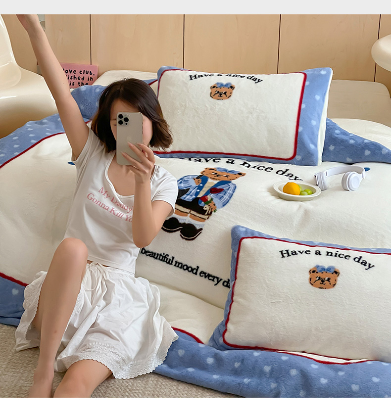 (总)安哆啦家纺 2025新款小清新双层花边款高克重牛奶绒四件套,粉粉豹,爱心-蓝,紫色蝴蝶结,小蝴蝶结-蓝,小蝴蝶结-粉,小草莓,条格喵,素语,美味樱桃,绿色蝴蝶结,花意,波点,时尚豹纹,爱心-红
