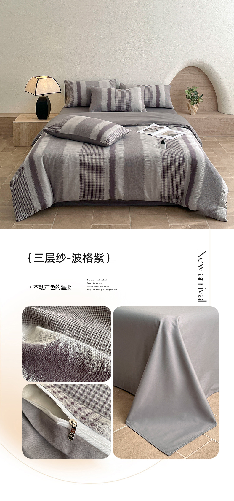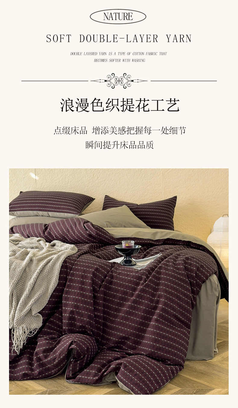 当前位置: 91家纺网 > 商品网购 > 床品套件 > 四件套 > 双层纱四件套 > 琪格格纺织 2025新款全棉纯棉双层纱提花四件套 双层纱-时光里-红