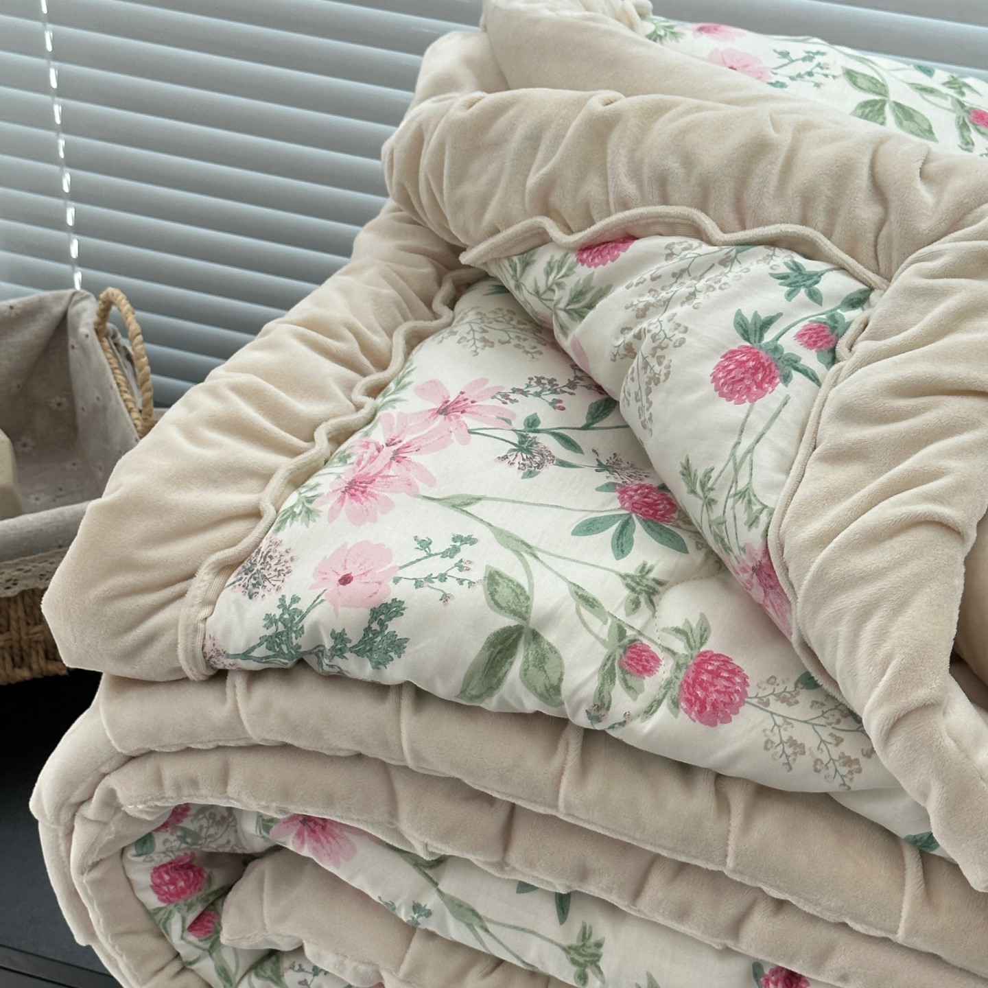 • 91家纺网 家纺一手货源 找家纺 佰织鑫家居 2025新款高克重宝宝绒婴儿绒春秋被子被芯 石榴花