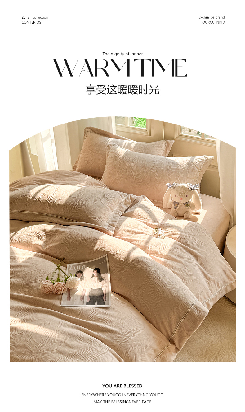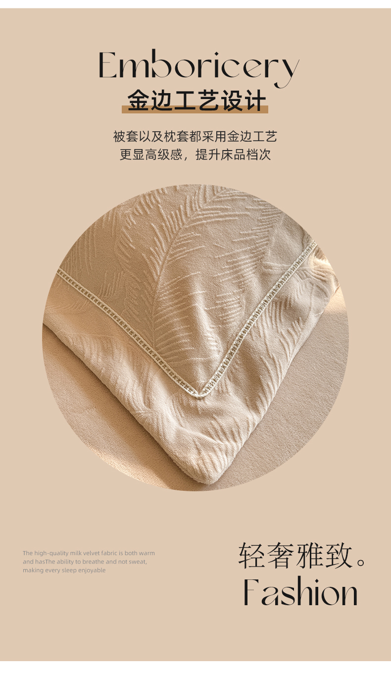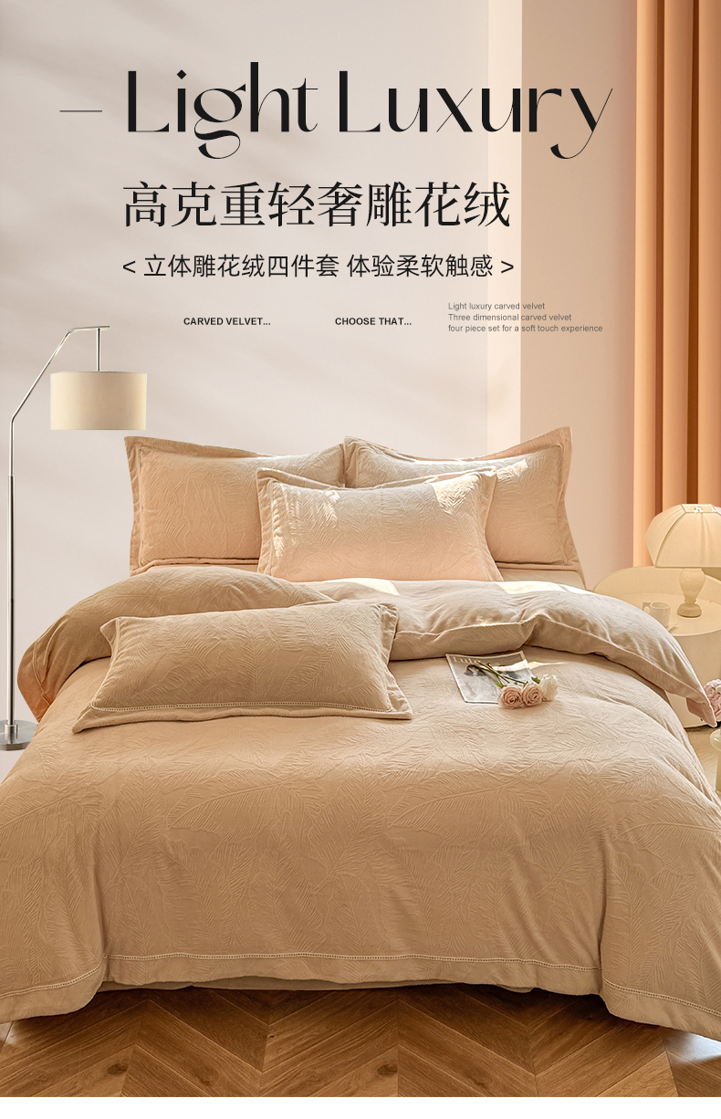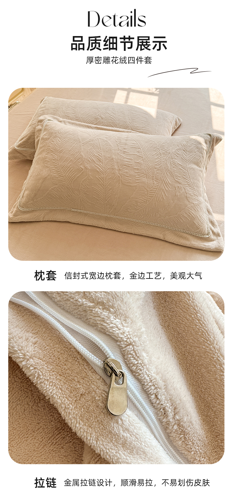 艾唯希家纺 2025新款全消光雕花绒织带款四件套牛奶绒-雕花织带系列 花之蔓-驼