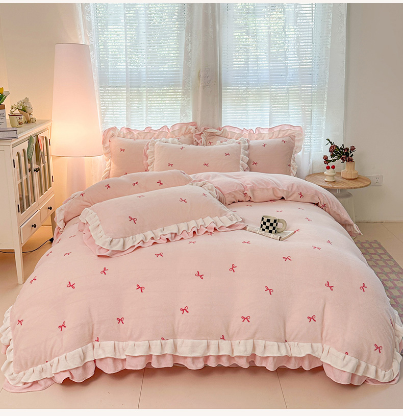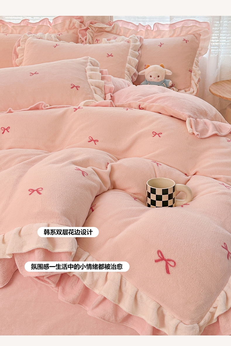 当前位置: 91家纺网 > 商品网购 > 床品套件 > 四件套 > 牛奶绒四件套 > 安哆啦家纺 2025新款小清新双层花边款高克重牛奶绒四件套 小蝴蝶结-粉