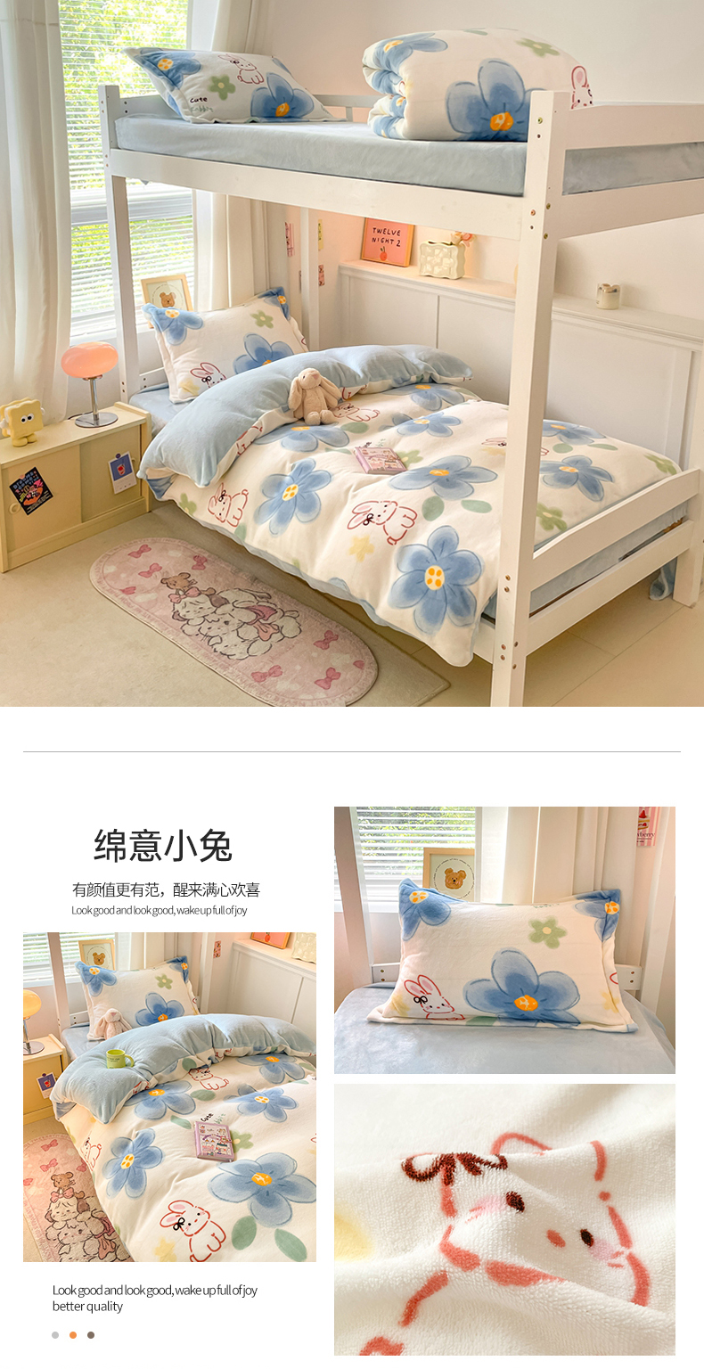 当前位置: 91家纺网 > 商品网购 > 床品套件 > 三件套 > 寻米 2025新款高克重加厚保暖牛奶绒学生宿舍单床笠单件床笠系列二 蜜可小兔