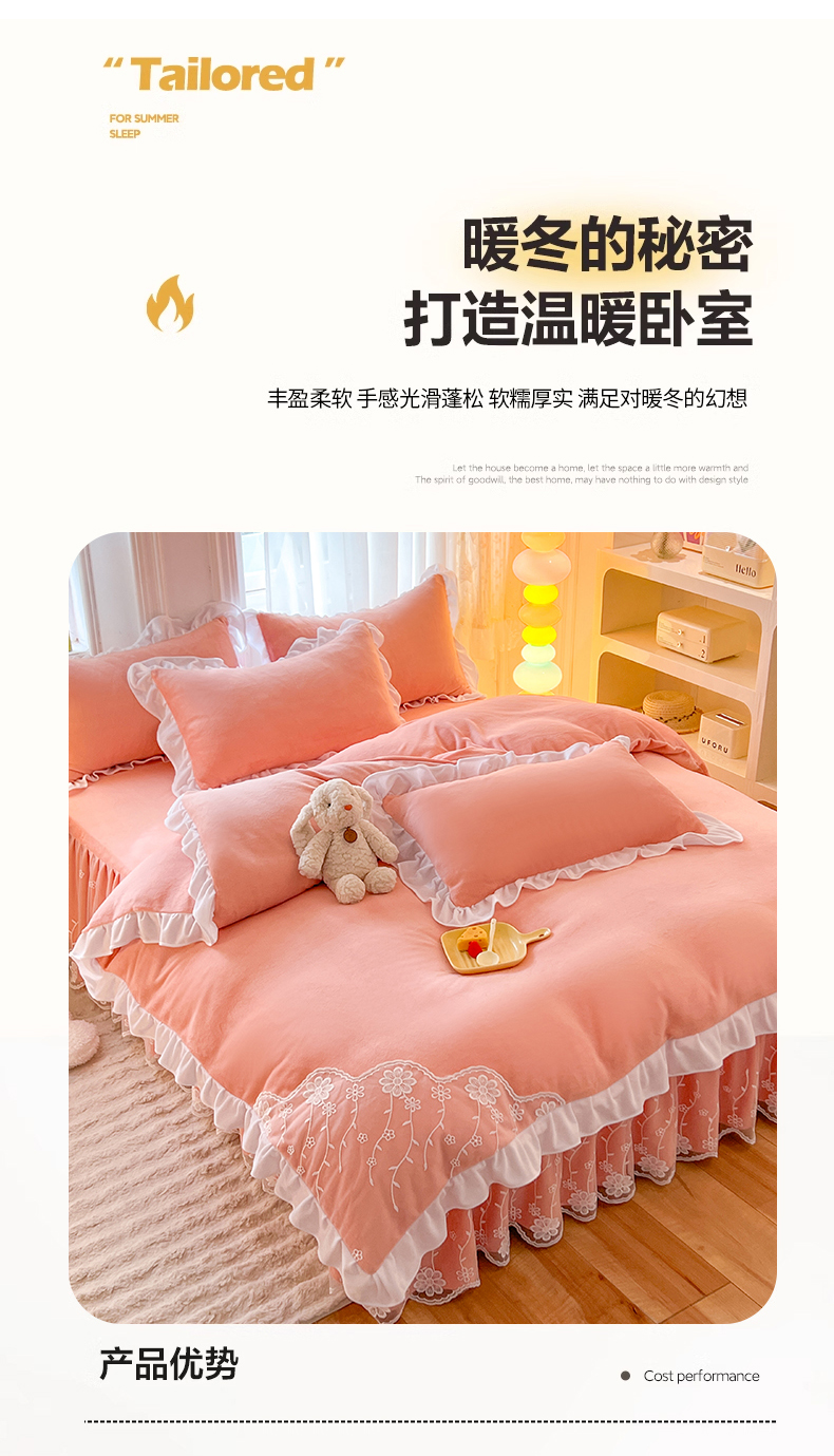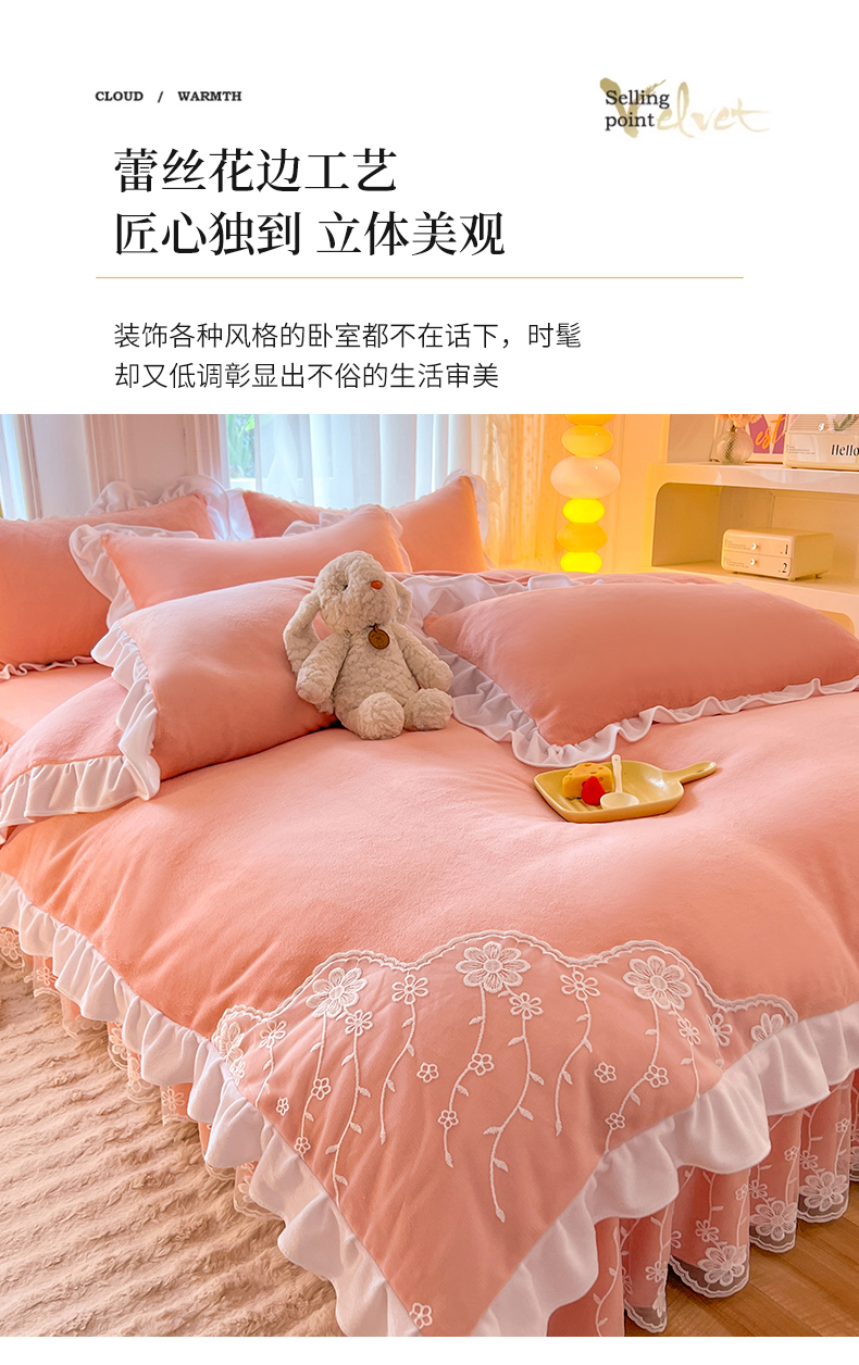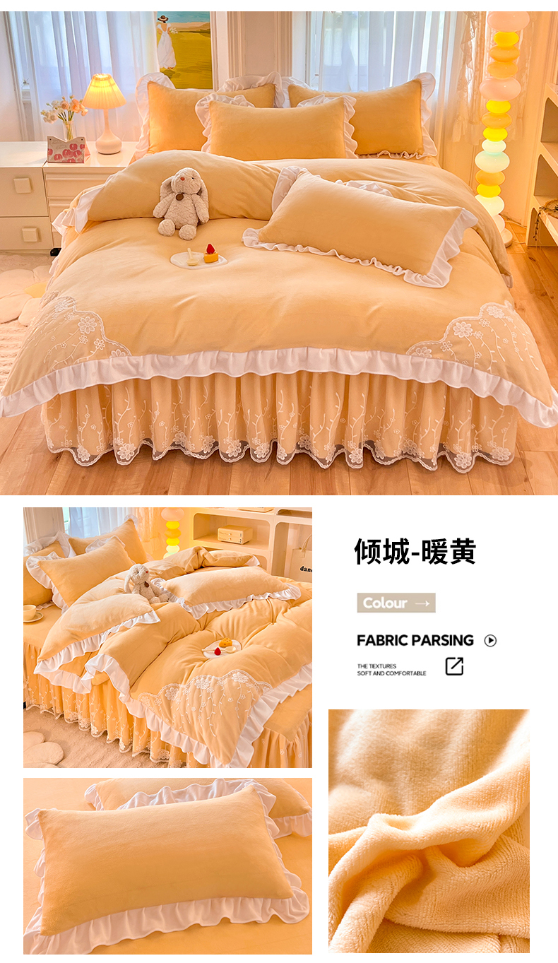(总)后庭寝室 2025新款牛奶绒花边床裙四件套-浪漫花语系列,浪漫花语-暖黄,浪漫花语-公主玉,浪漫花语-梦幻紫,浪漫花语-暖粉玉,浪漫花语-少女粉,浪漫花语-天空蓝
