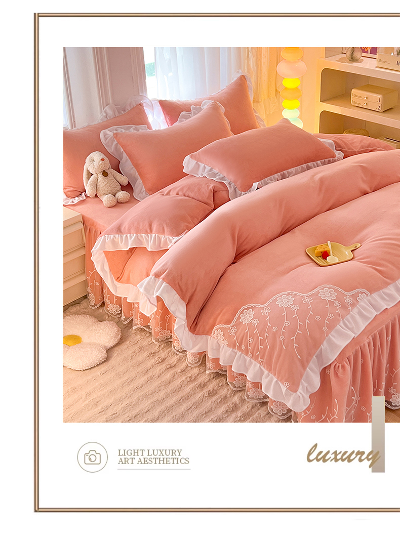 (总)后庭寝室 2025新款韩式花边牛奶绒四件套-香香公主系列,香香公主-嫩玉,香香公主-粉色,香香公主-豆沙,香香公主-粉玉,香香公主-湖蓝,香香公主-暖黄,香香公主-浅灰,香香公主-浅蓝,香香公主-浅紫,香香公主-玉色