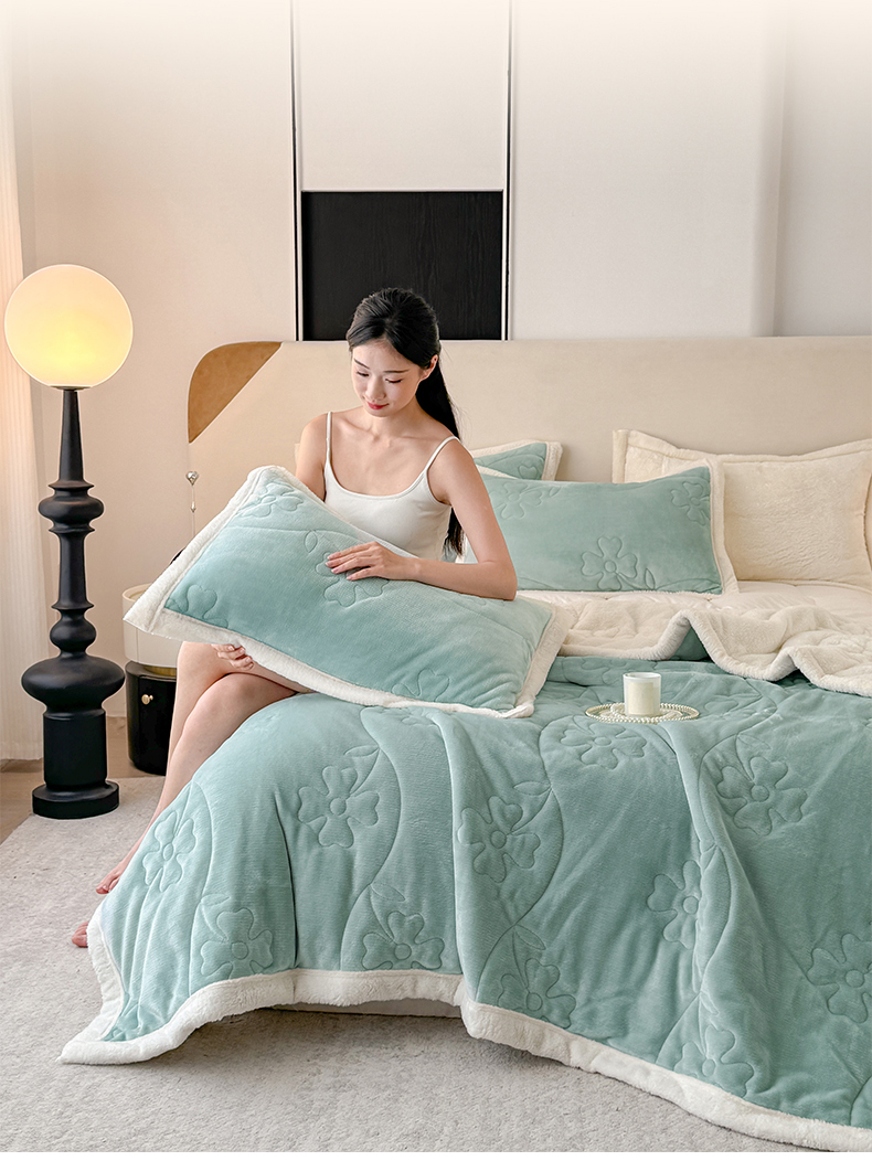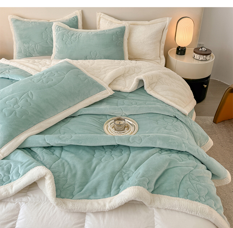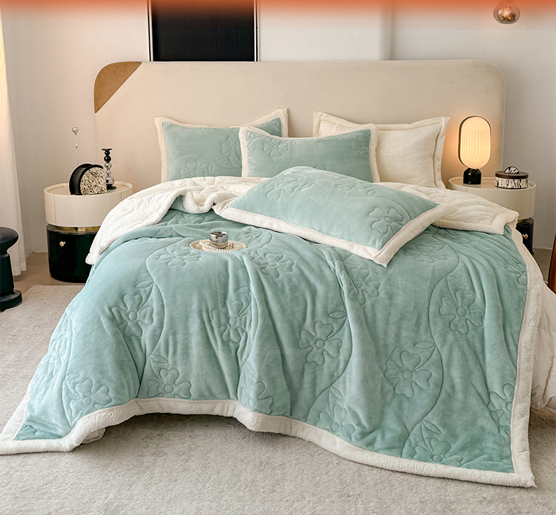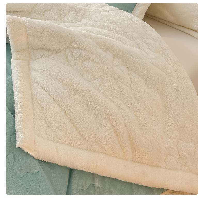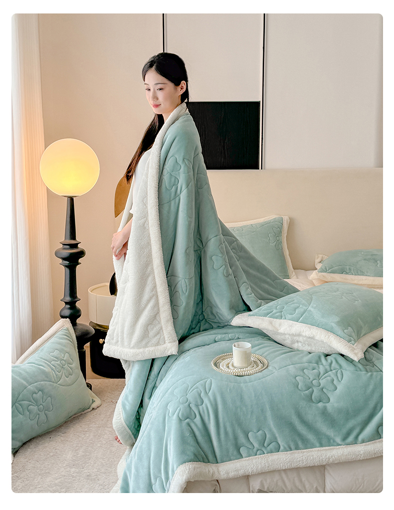 商品名称:青竹苑 2025新款A类婴儿绒北极绒羽丝棉三层夹棉盖毯多功能盖毯 湖绿