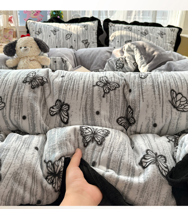 当前位置: 91家纺网 > 商品网购 > 床品套件 > 四件套 > 牛奶绒四件套 > 耀悦家纺 2025新款着色雕花黑边牛奶绒四件套-永恒蝴蝶系列 玫瑰-黑边工艺款