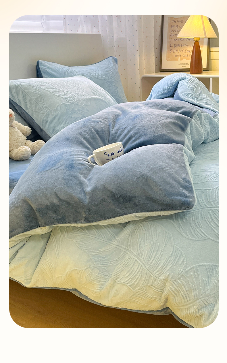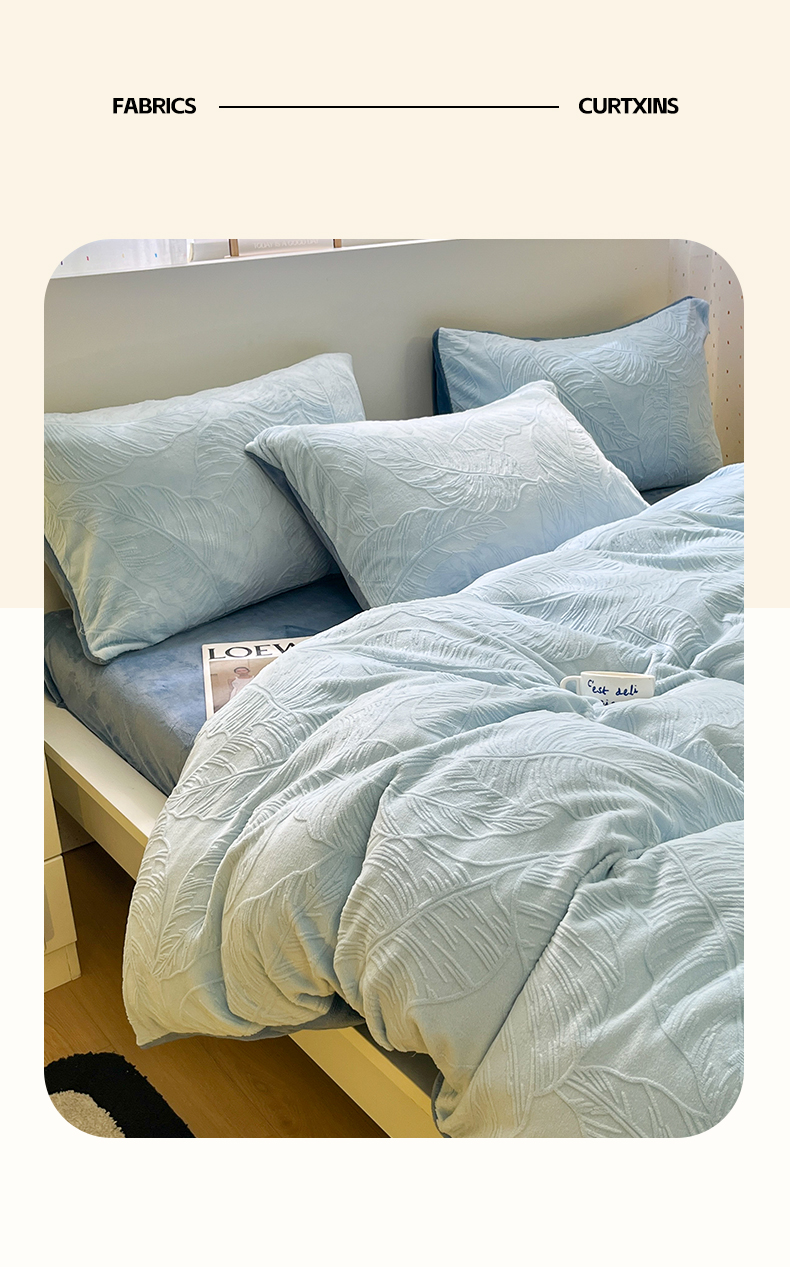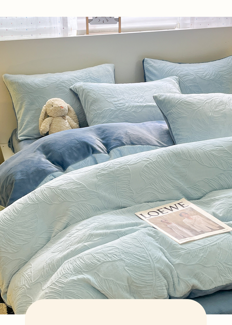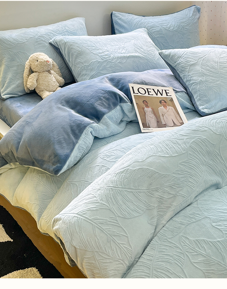 如一 2025新款3D雕花牛奶绒四件套第三批 芭蕉叶-蓝