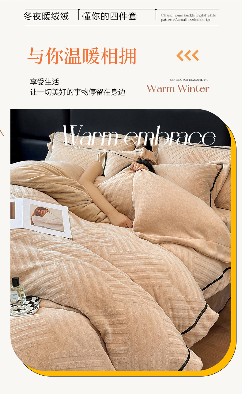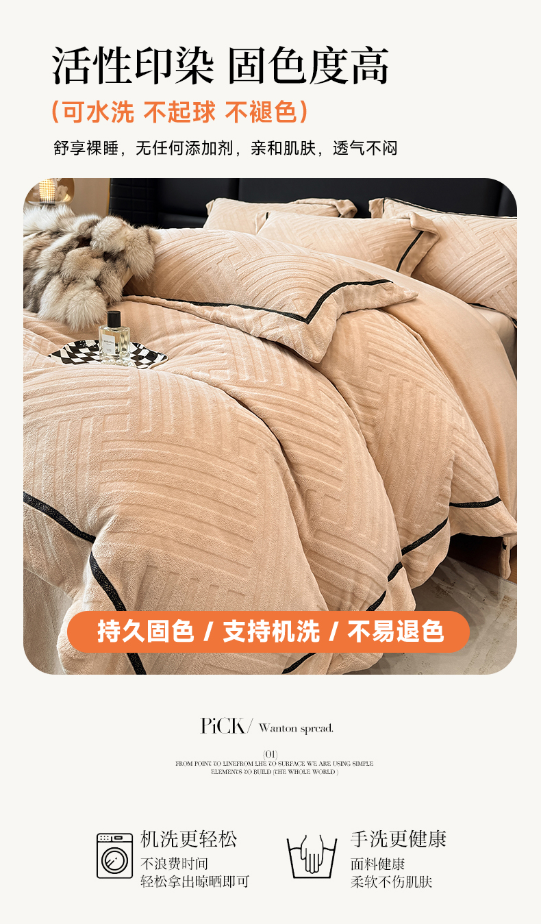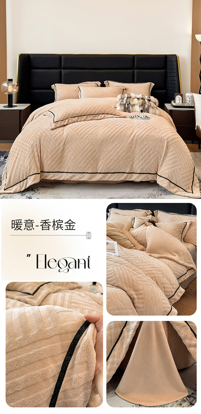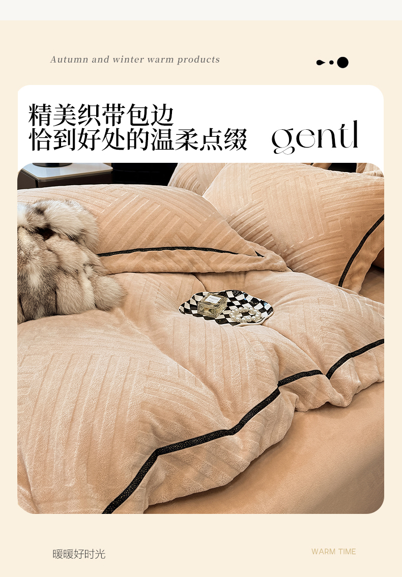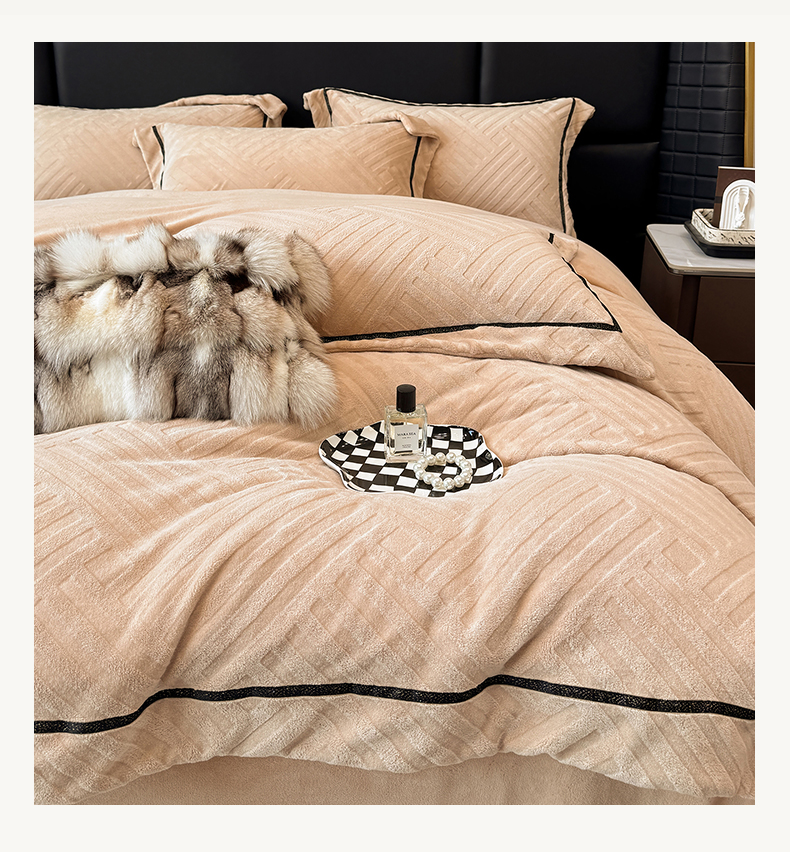 商品名称:家居1号家纺 2025新款230克全消光牛奶绒剪花四件套-暖意 暖意-香槟金