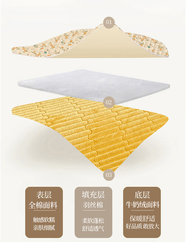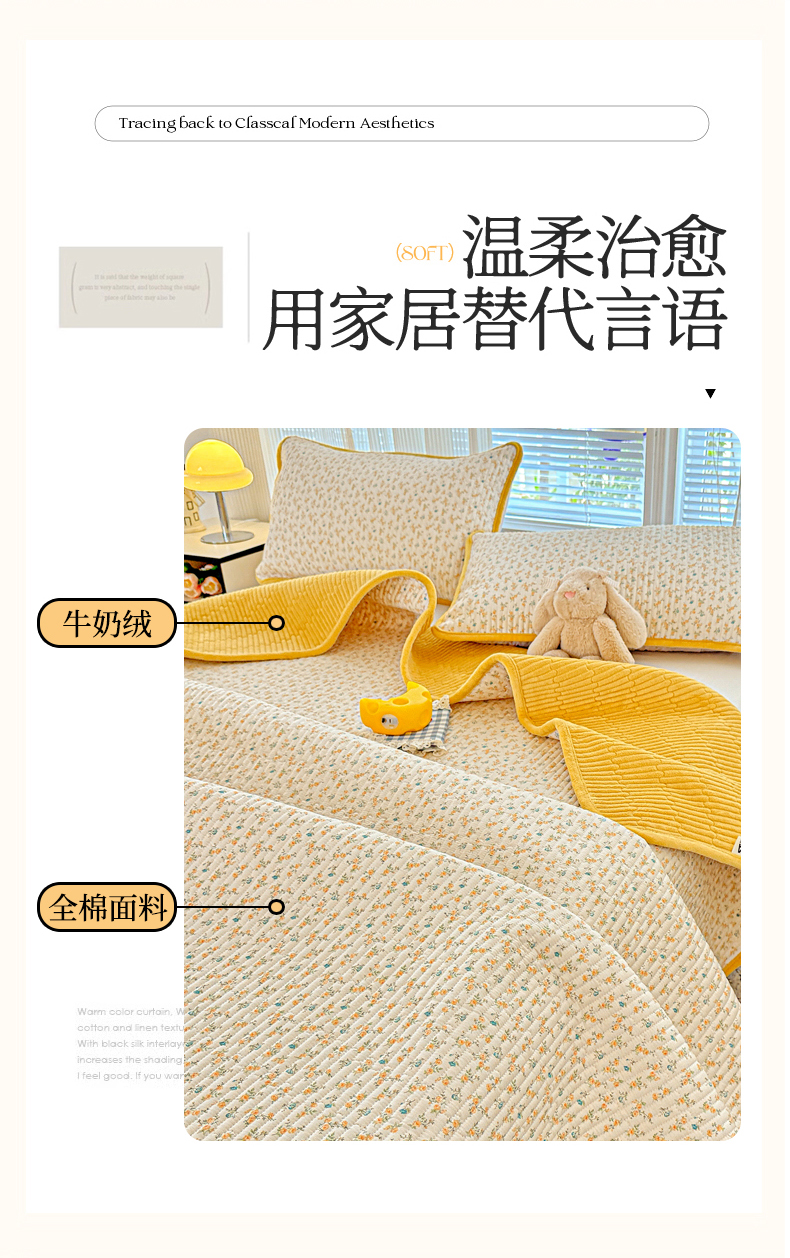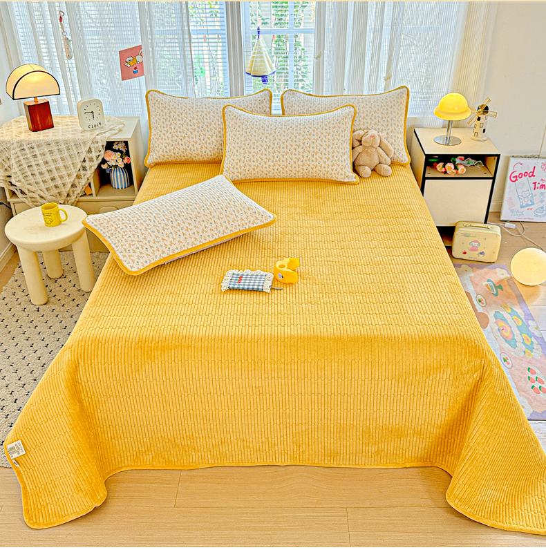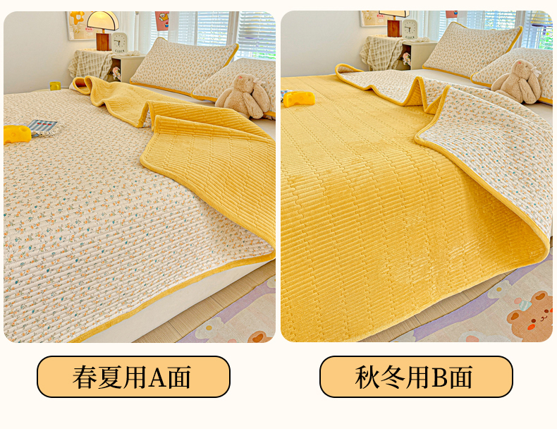 • 91家纺网 家纺一手货源 找家纺 恒尚居 2025新款全棉牛奶绒床盖四季可用纯棉夹棉床单床褥垫三件套-秋冬款系列一 悦色【A纯棉-B牛奶绒】